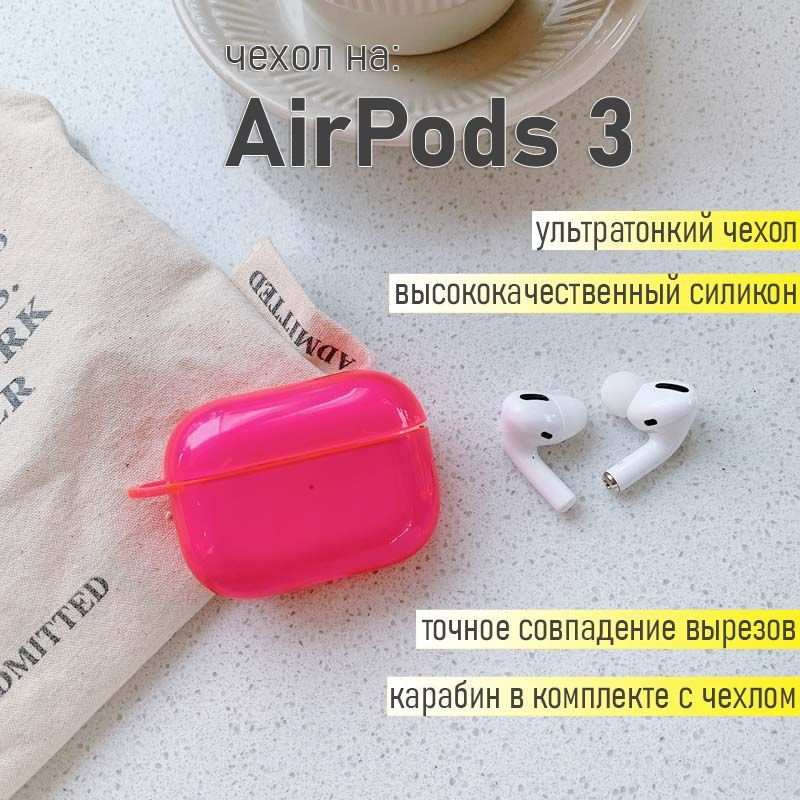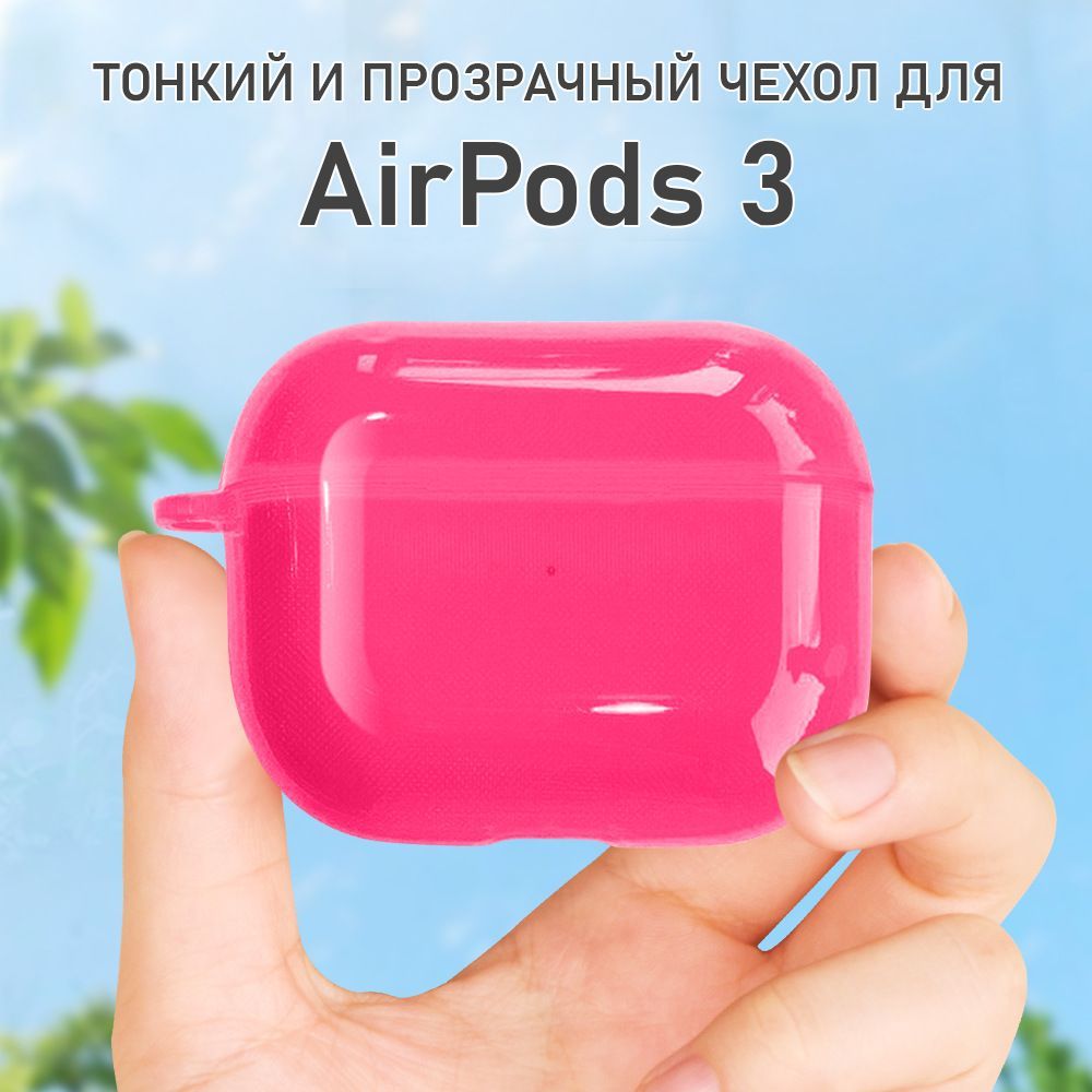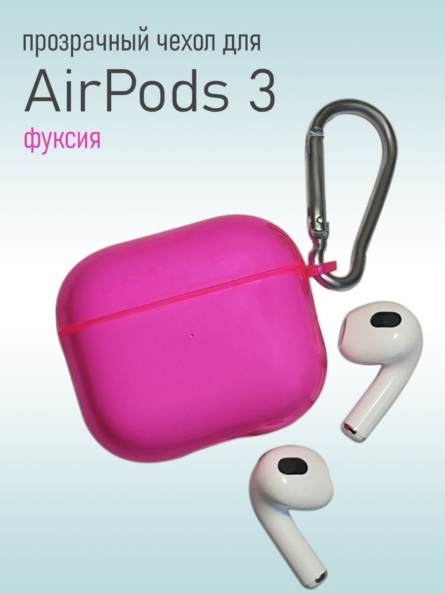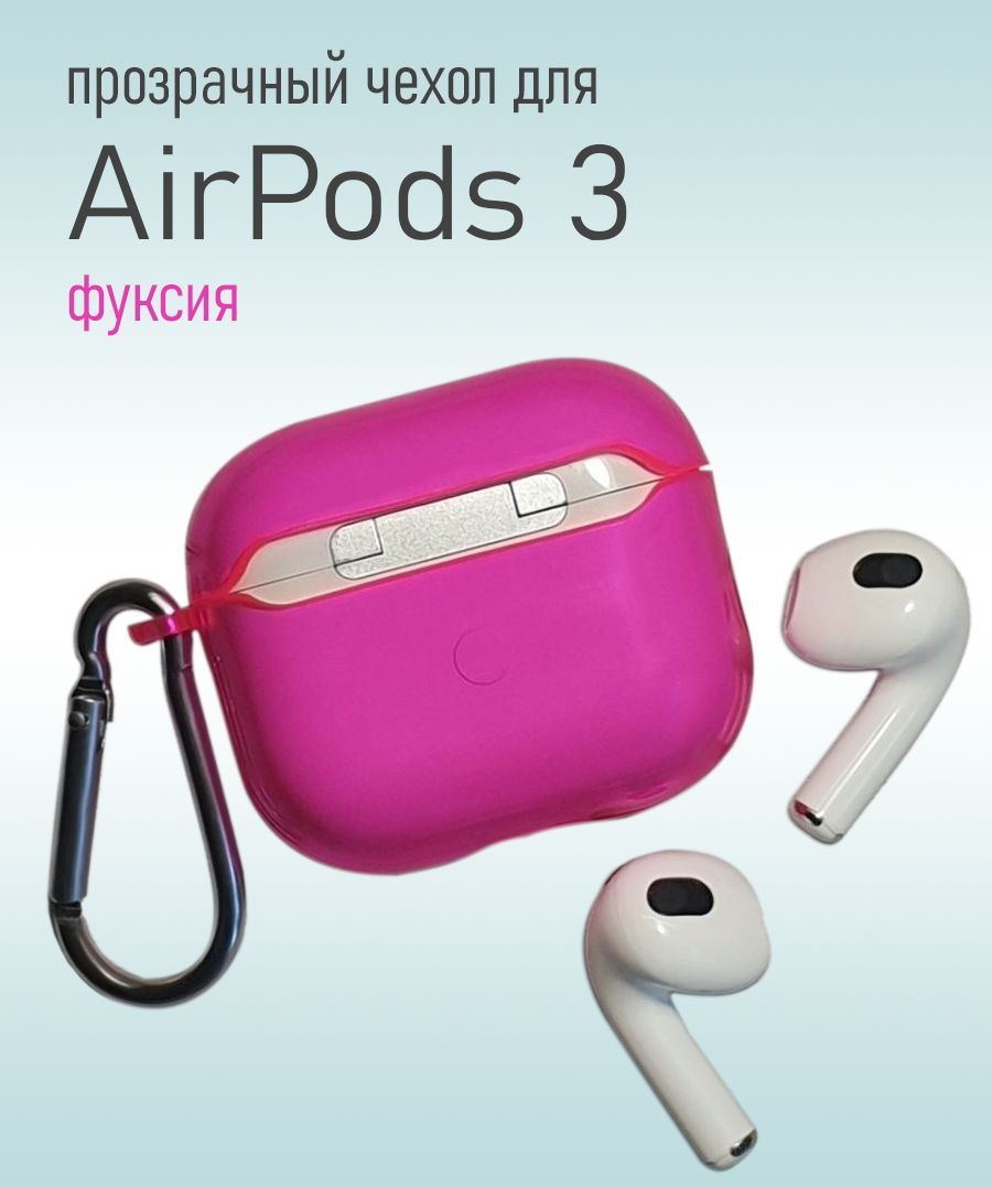 Прозрачный силиконовый чехол KRISTANAM для наушников Apple AirPods 3 / противоударный кейс для AirPods3 с карабином / фуксия