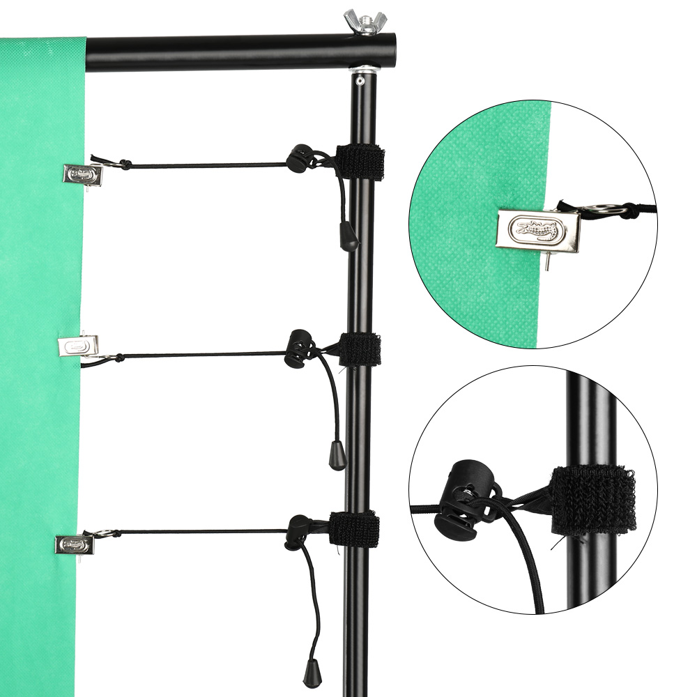 Прочные зажимы подходят для большинства подставок стандартного размера и фоновой ткани.