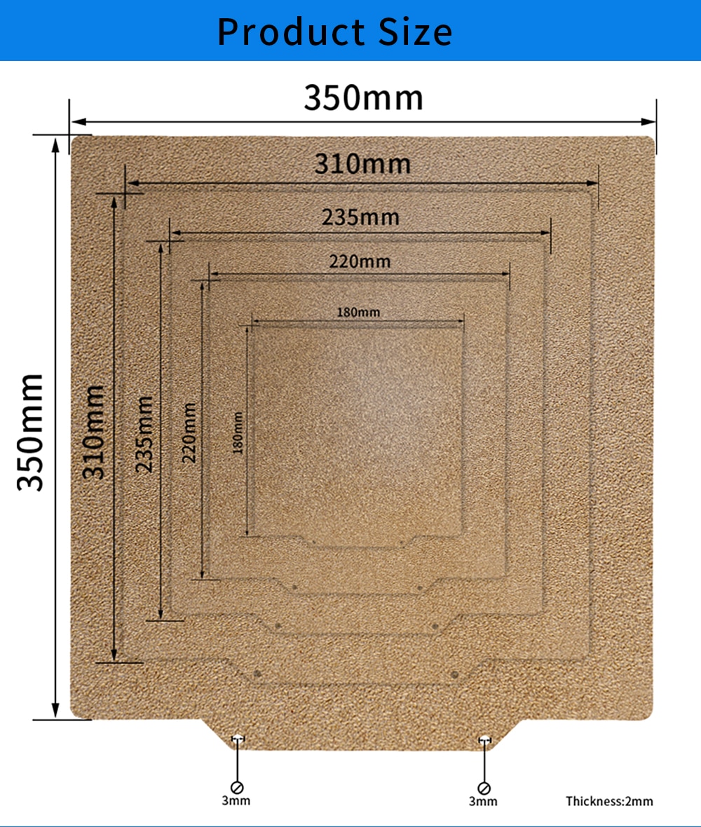Пружинный стальной лист PEI с магнитным основанием 180/210/220/235/310/350 мм