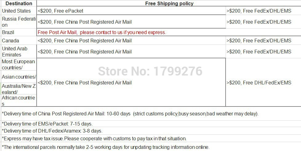 Если вы обнаружите какие-либо проблемы с нашими продуктами после их получения, пожалуйста, немедленно свяжитесь с нами и покажите нам некоторые фотографии проблем. Мы приложим все усилия, чтобы решить их для вас, если вы удовлетворены нашими продуктами и обслуживанием, мы будем очень признательны, когда вы дадите нам пять звезд отзывы. Большое спасибо!