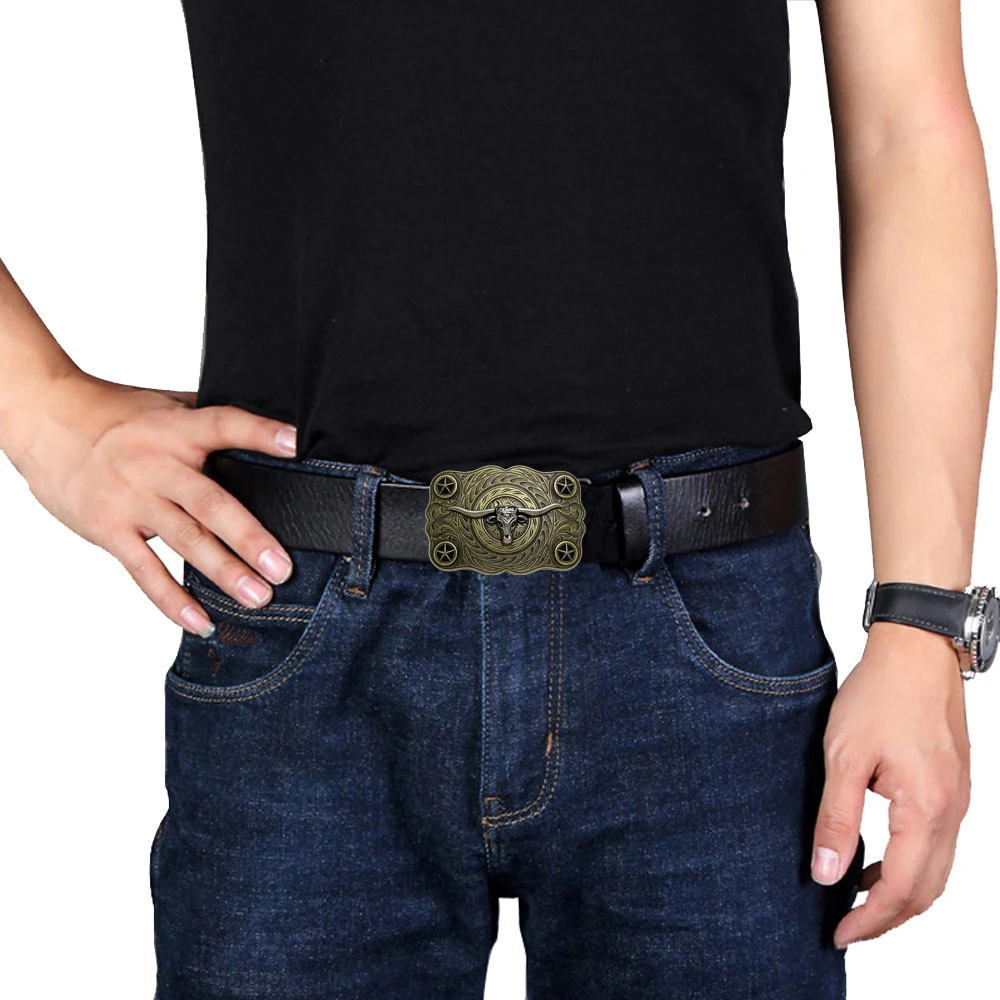 Прямая поставка, низкая цена, Мужская бронзовая пряжка для ремня в Западном ковбойском стиле родео с головой быка для ремня шириной 40 мм, металлическая пряжка в виде животного