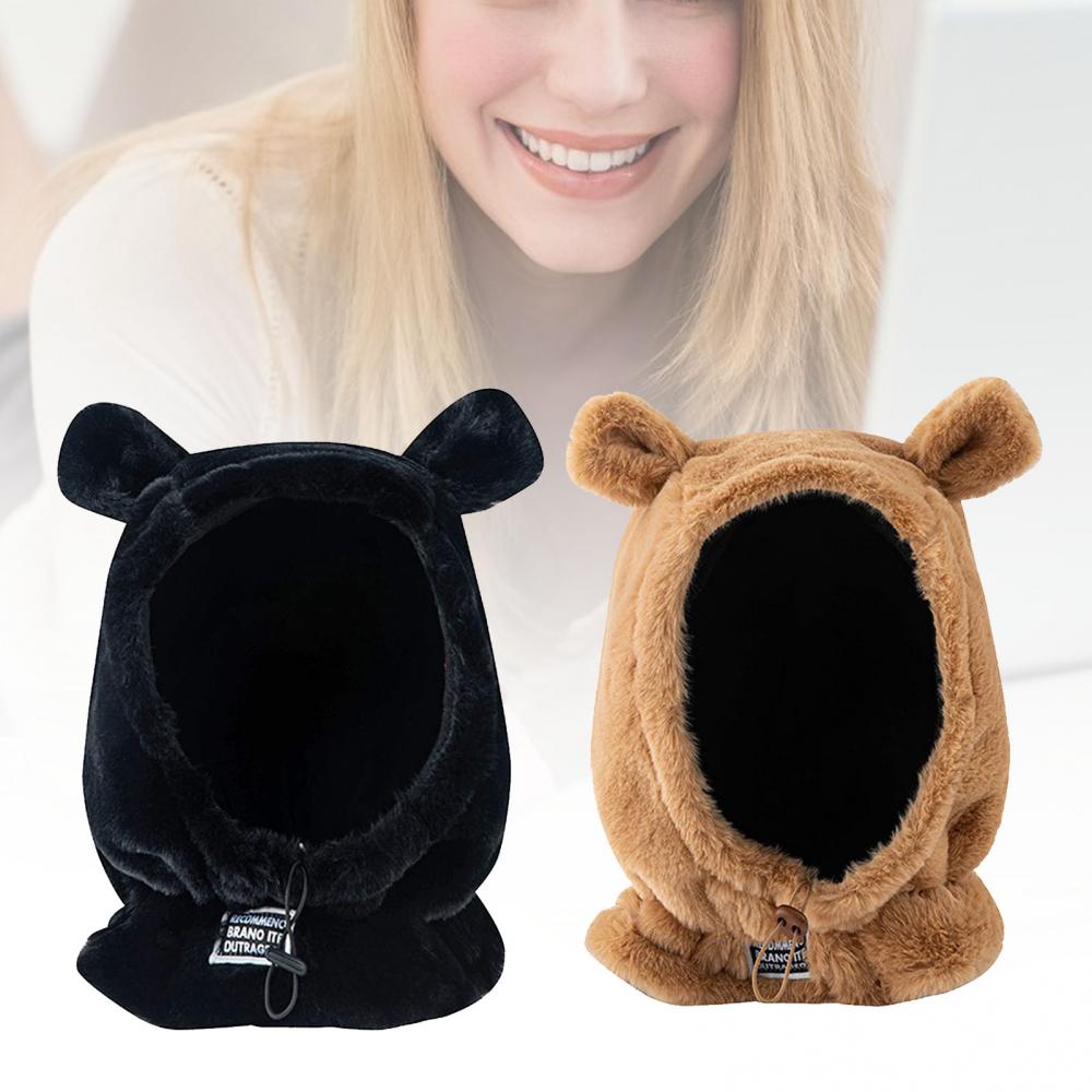 Прямая поставка! Женская шапка, зимний однотонный ветрозащитный Теплый шарф-шапка с ушками медведя