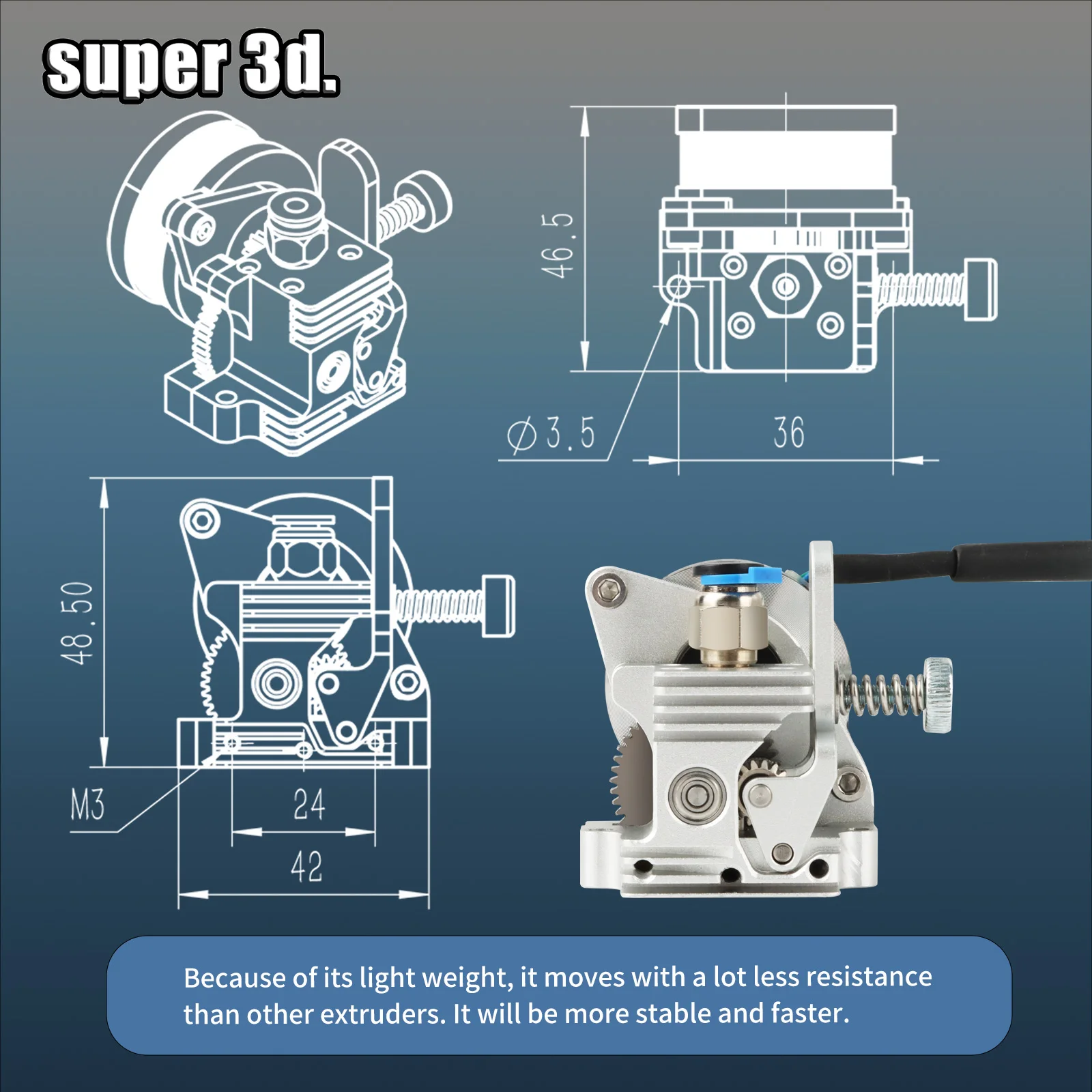 1.This product can be used alone as an extruder, or it can be used as a print head after adding a heating block throat. It is lighter than most extruders