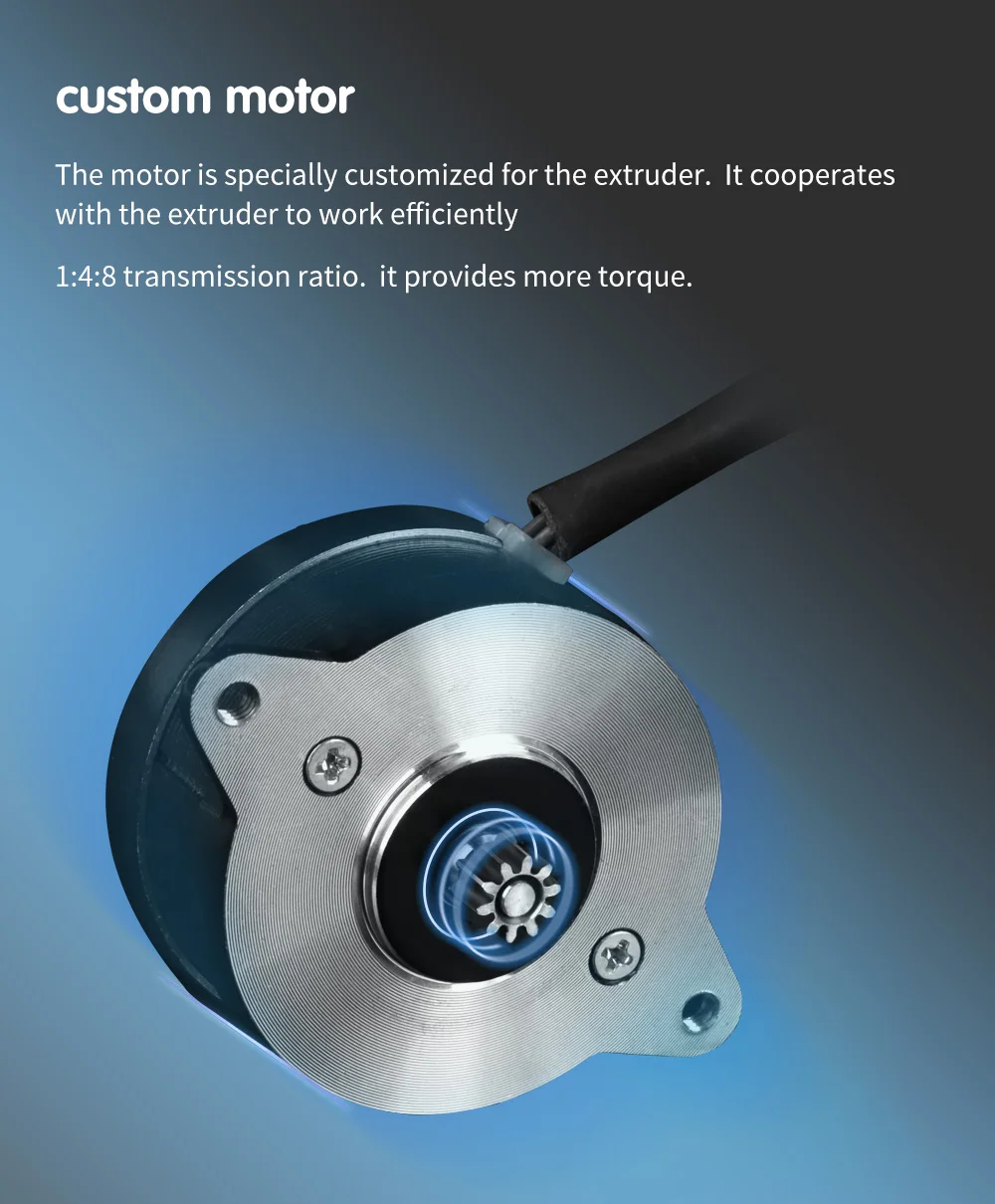 9. The body of the extruder has heat sinks to reduce weight and enhance heat dissipation