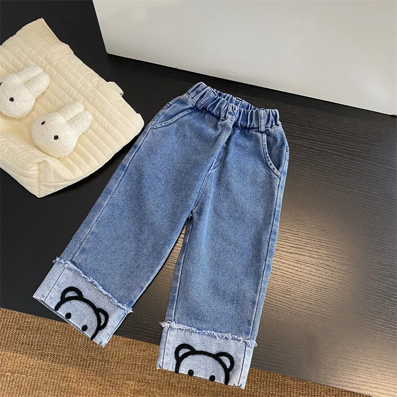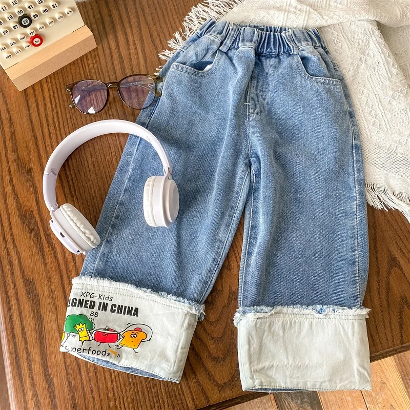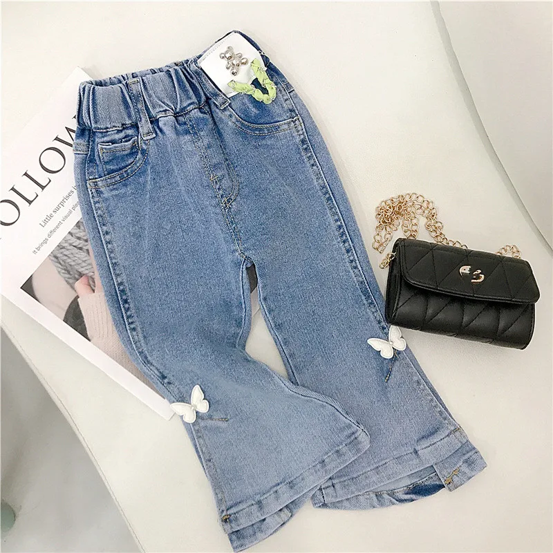 Джинсы для маленьких девочек весна Детские свободные джинсовые брюки Принцесса Джинсовые брюки модные детские брюки Детские джинсы