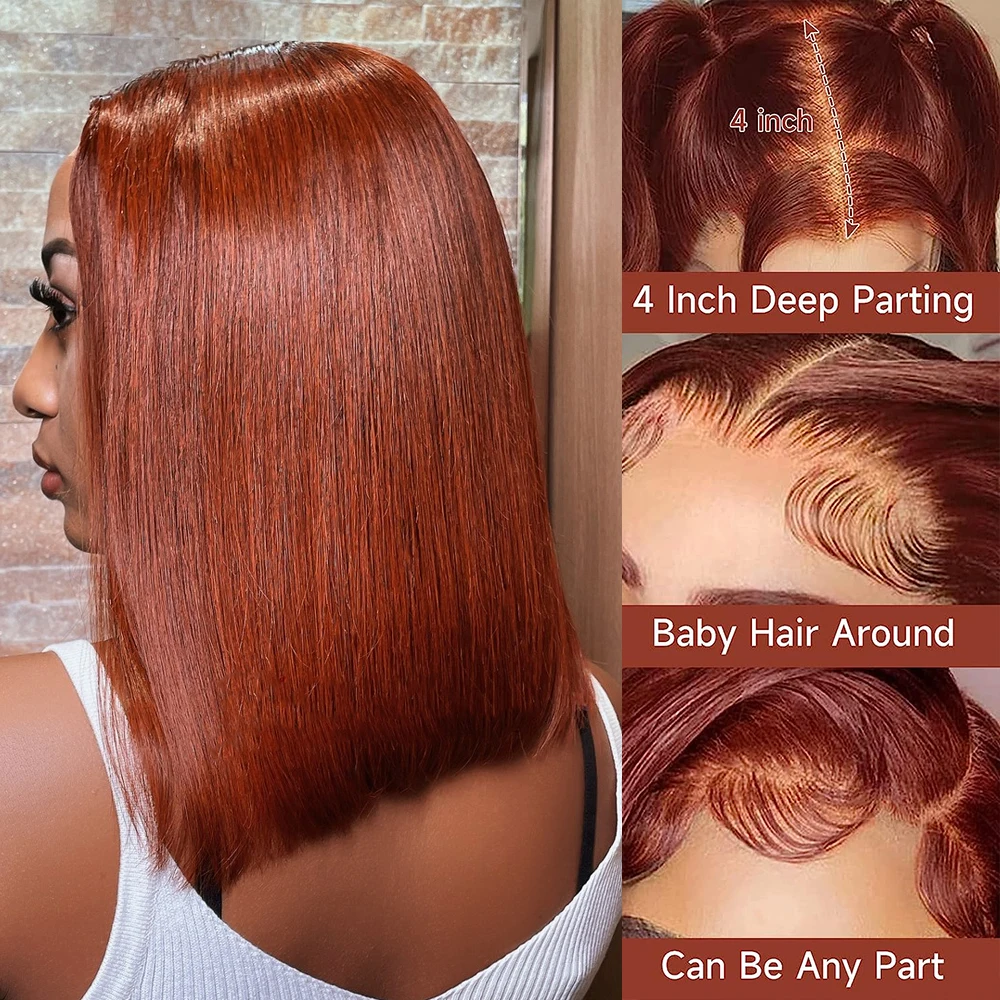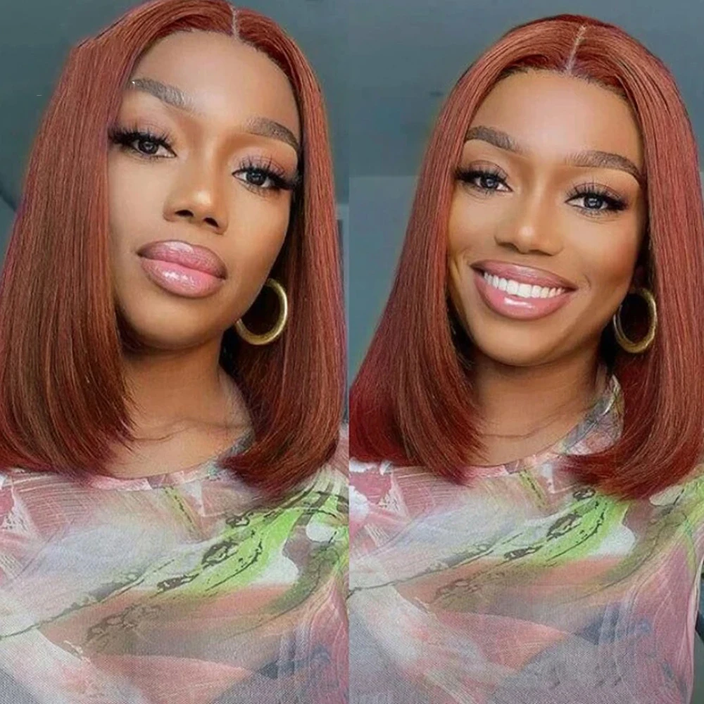 Прямые короткие парики из человеческих волос, 180% плотность, красновато-коричневый, прозрачный парик на сетке спереди, парик без повреждений из цветных человеческих волос для женщин