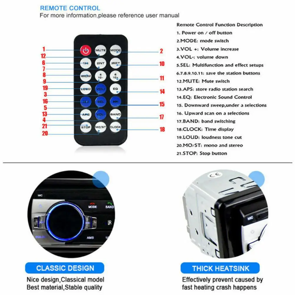 (Прямые продажи с фабрики) Автомобильный MP3-плеер Стерео 60 Вт * 4 Автомагнитола для грузовика Usb/tf/fm/aux аудио 12В/24В Bluetooth U1d9