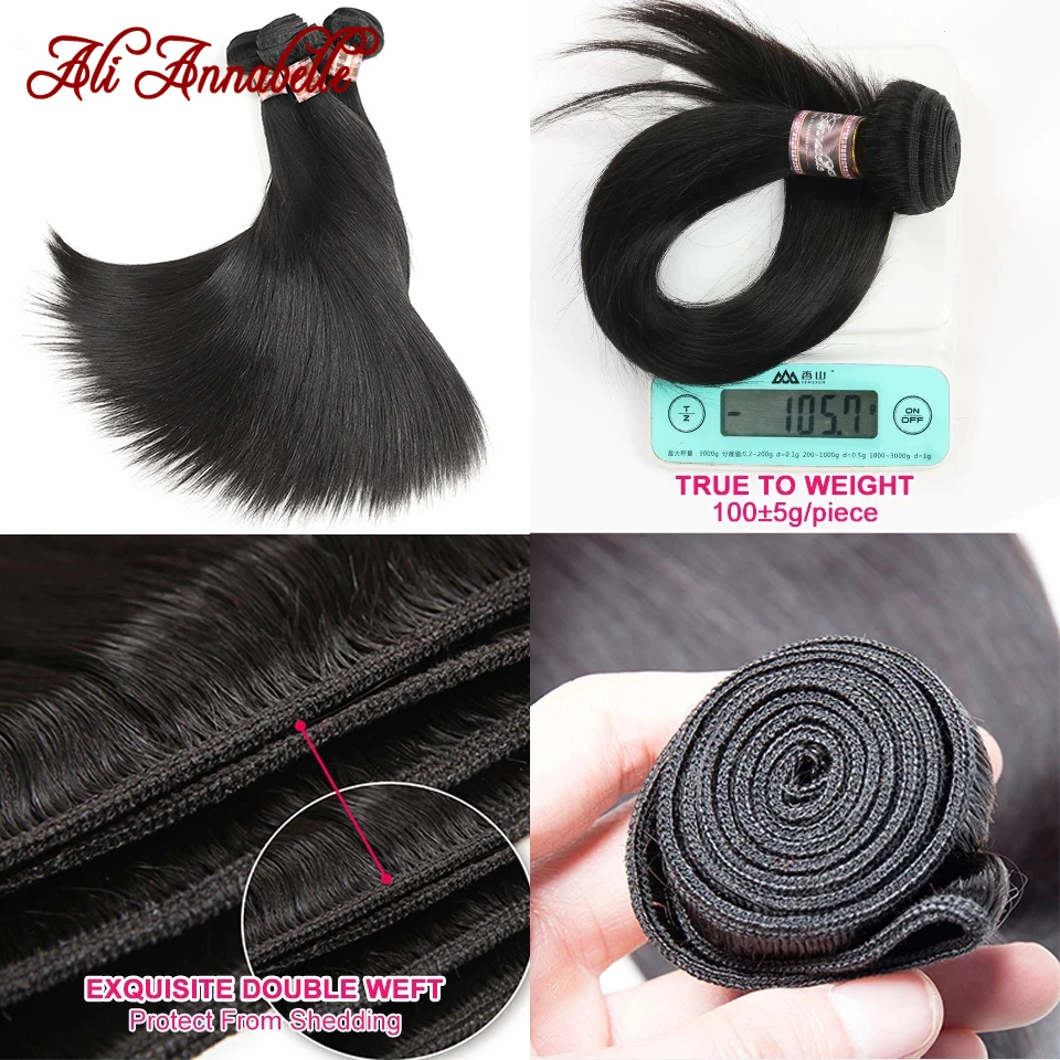Прямые волосы ALI ANNABELLE, пучки с застежкой, человеческие волосы, пучки с застежкой, 4x4 5x5, бразильские волосы с застежкой, пупряди с застежкой