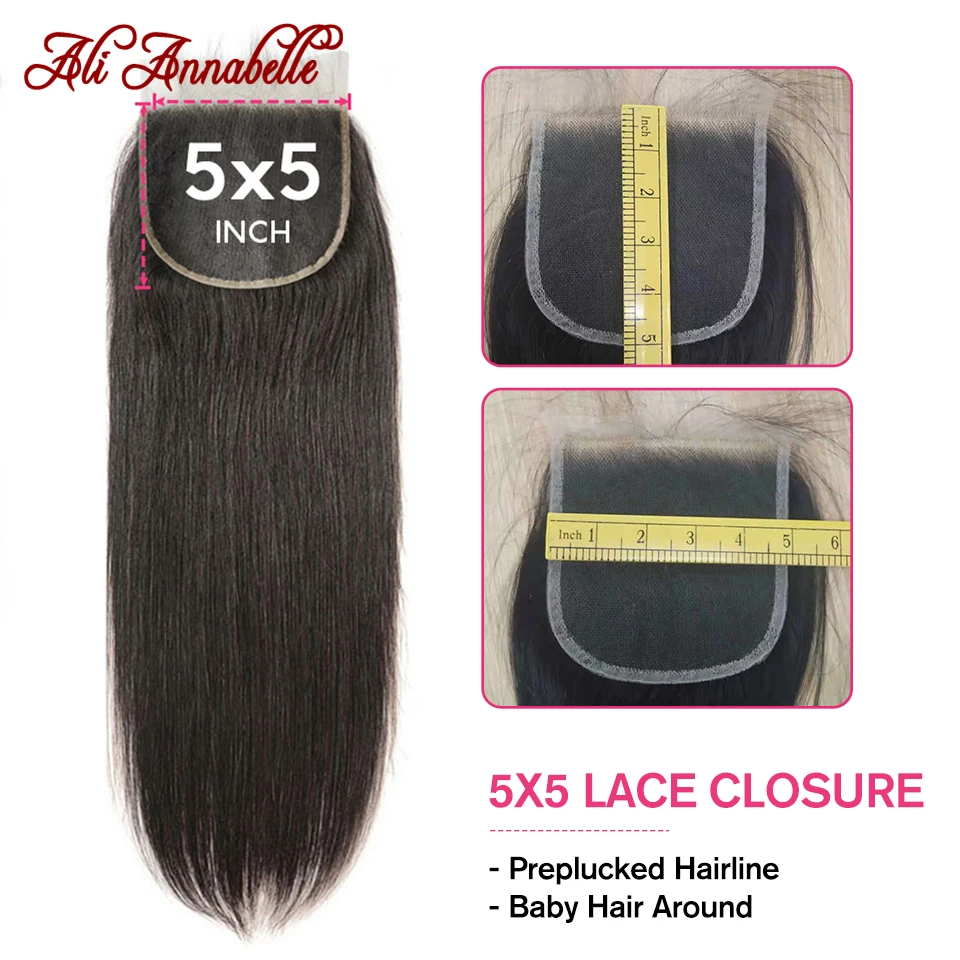 Прямые пряди для волос ALI ANNABELLE с кружевной застежкой 4x4 5x5