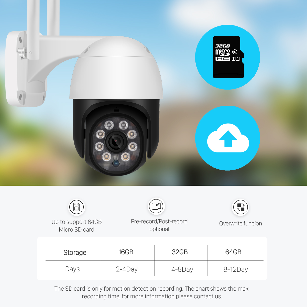Поддерживает полную циклическую запись, когда SD-карта заполнена, старое видео будет автоматически закрыто для просмотра новой записи. Поддержка записи по тревоге движения, вы можете просто записывать, когда он обнаруживает движение, чтобы сэкономить больше места для вашей SD-карты и облачного хранилища;