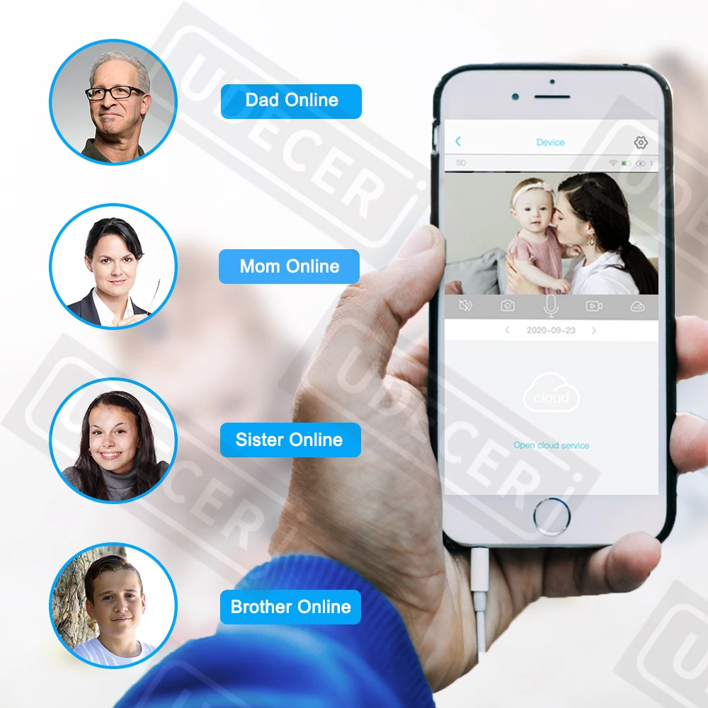 Вы будете получать камеру с микрофоном и динамиком. Вы можете поговорить со своей семьей в любое время и любом месте, например, на работе, в путешествии или на командировке.