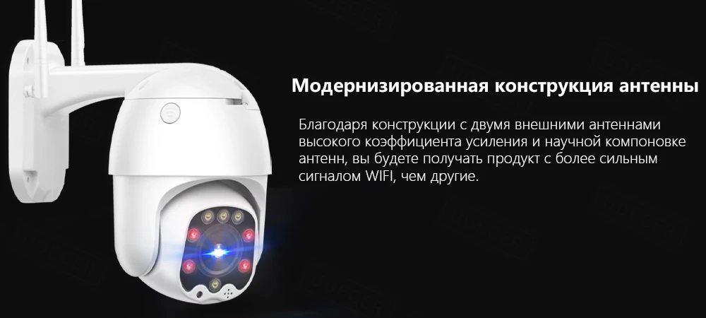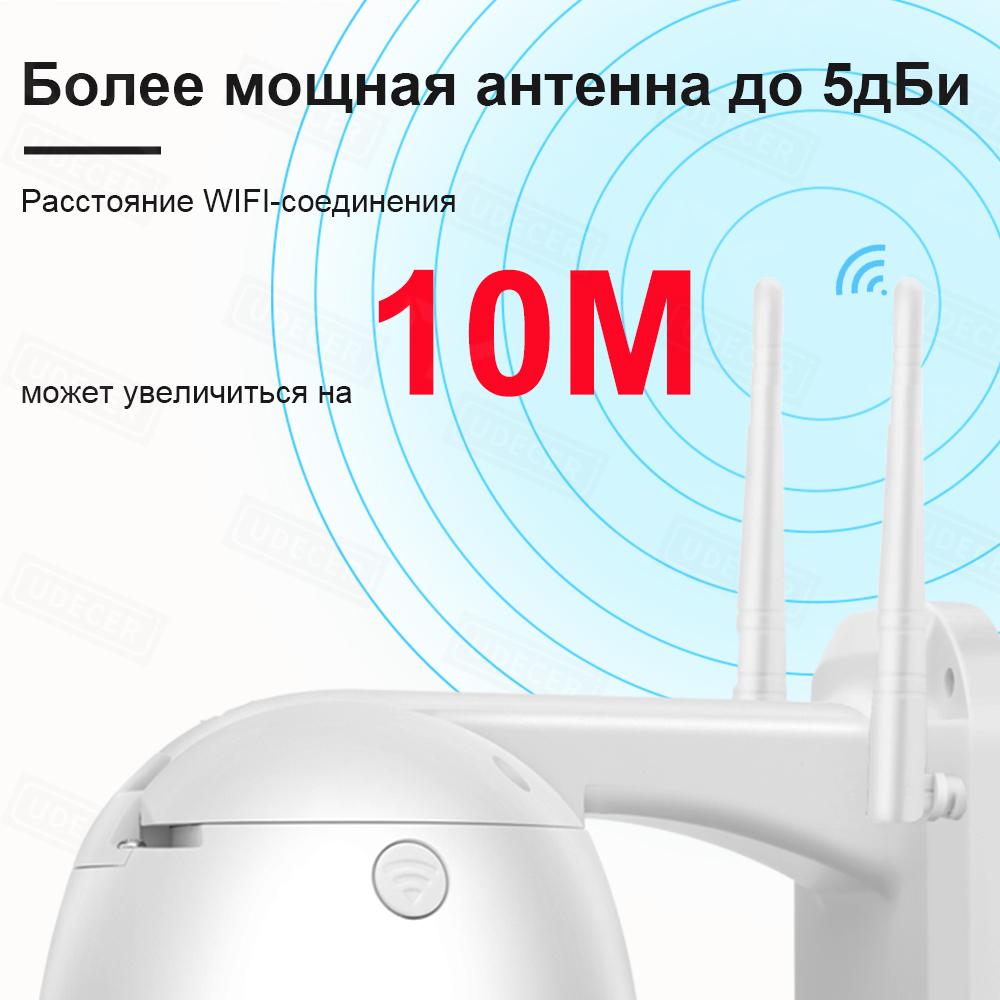 Вы будете получать камеру с более мощными антеннами 5 дБи, а расстояние WIFI-соединения можно увеличить на 10 м.