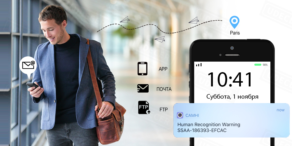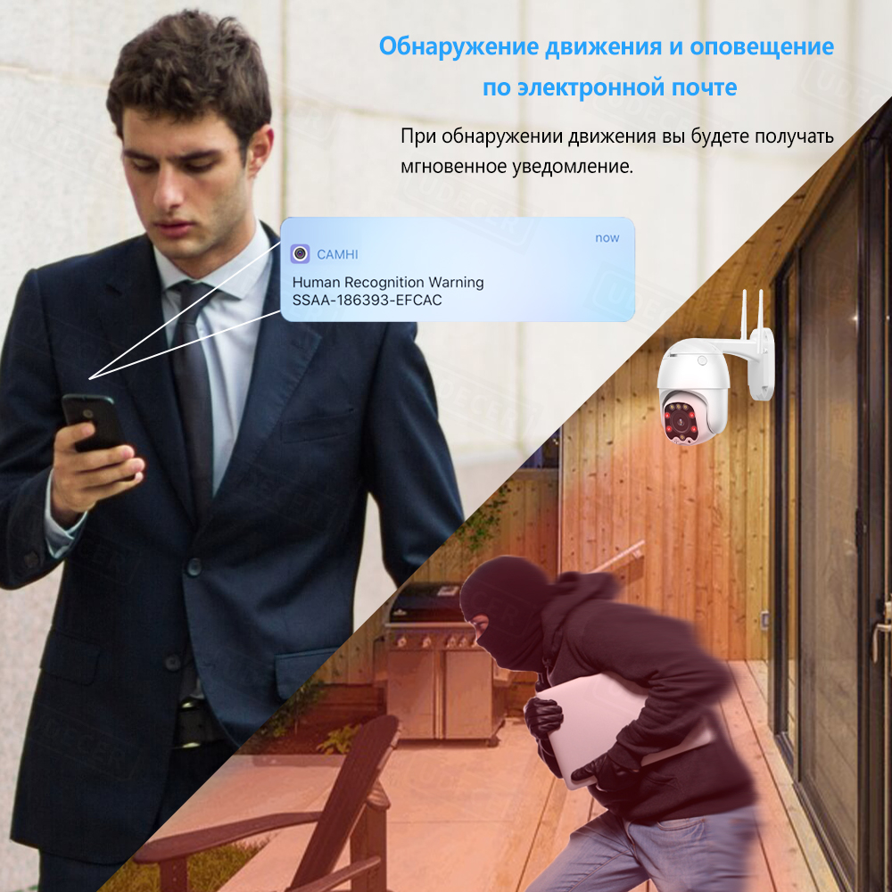 Камера самостоятельно будет обнаружать движущий объект и при опасности включать сигнал тревоги. Можно эффективно защитить ваш дом и бизнес от потерь, вызванных вторжением. При обнаружении подозрительной ситуации у вас будет уведомление реального времени.