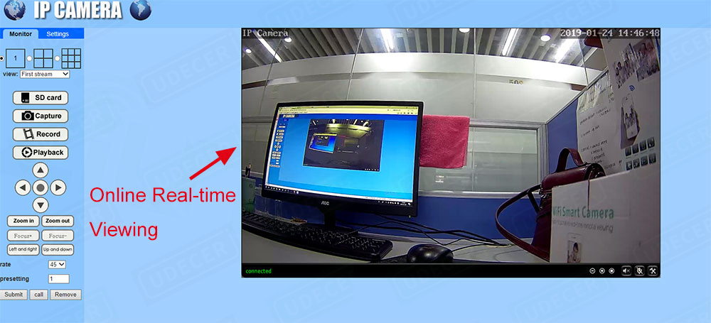 Ваша камера может быть подключена к PC через IP-адрес, введенный в браузере IE, и в программное обеспечение HiP2P через UID камеры.