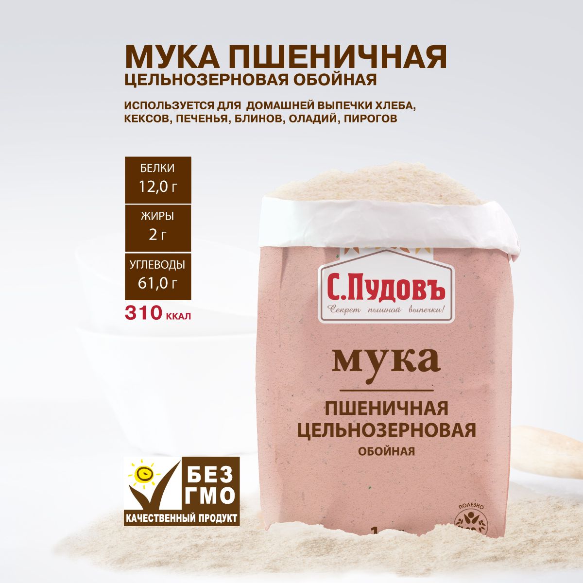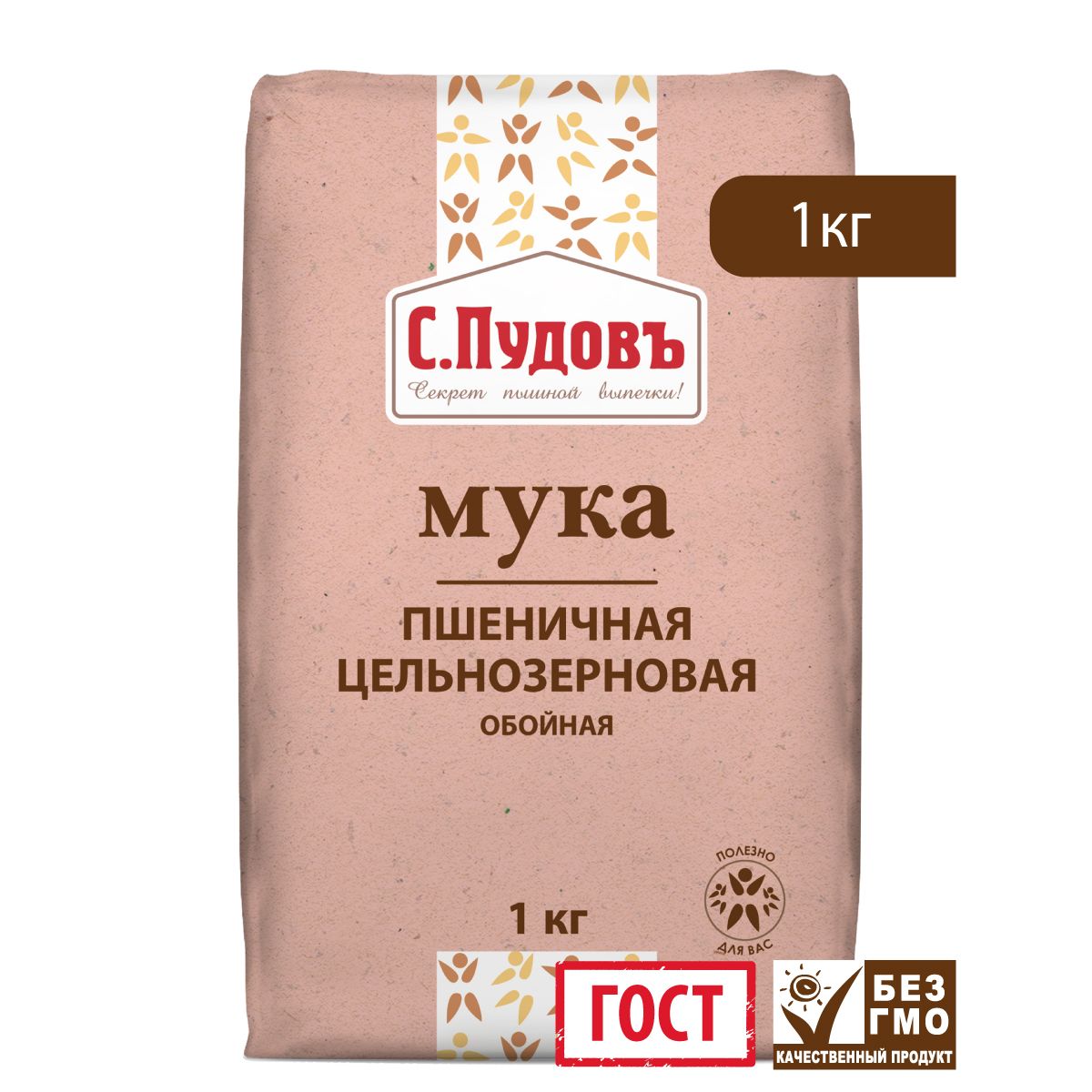 Пудовъ мука пшеничная обойная цельнозерновая, 1 кг
