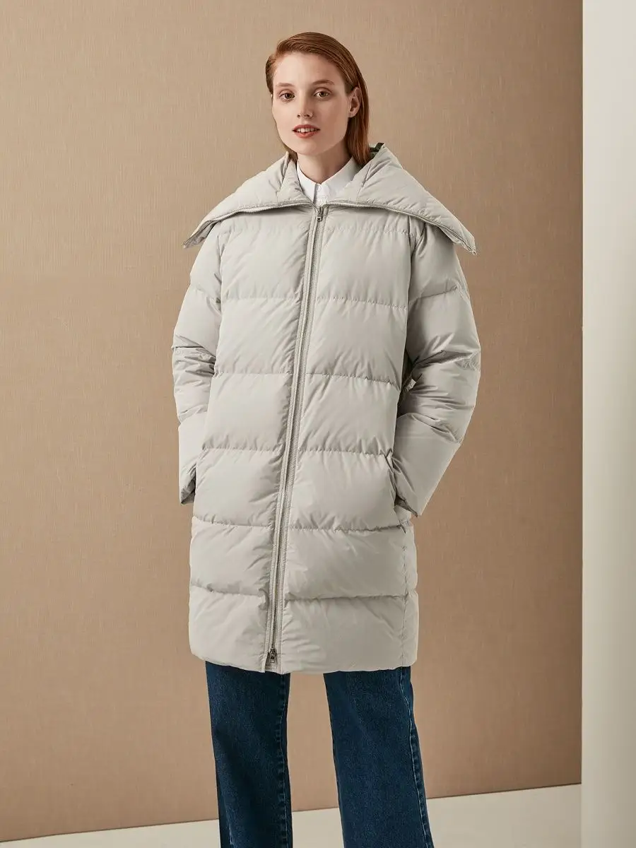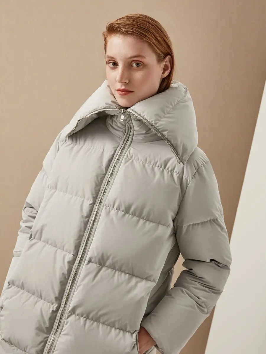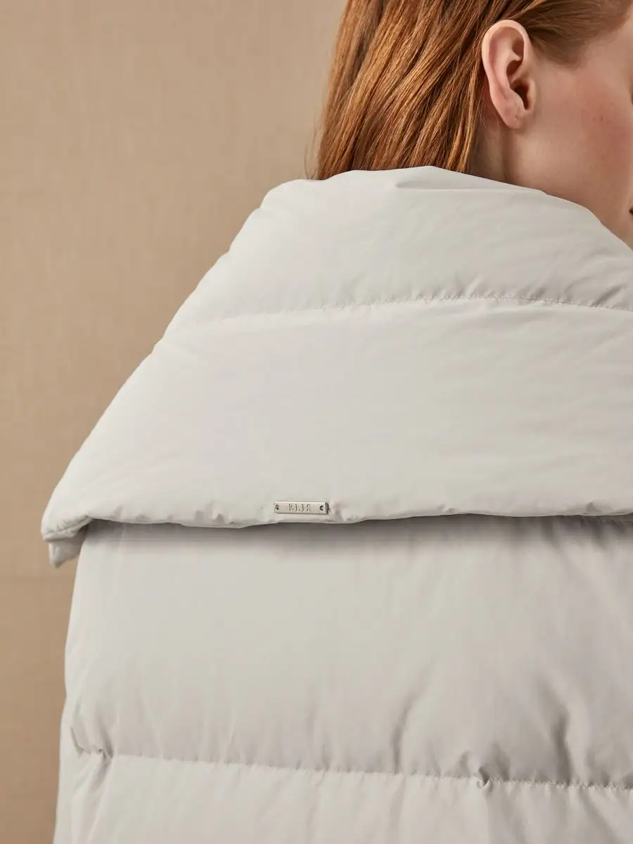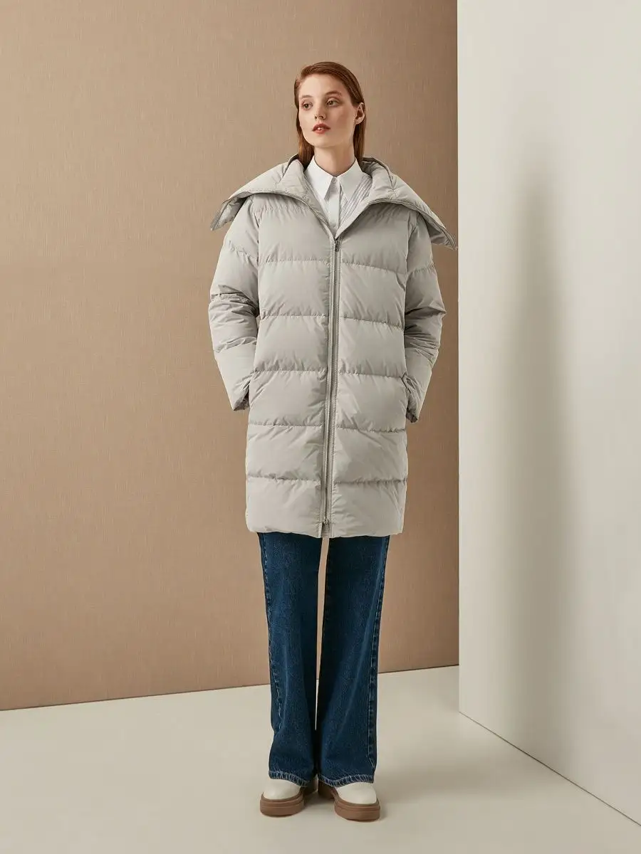 Описание: Базовый пуховик светло-серого цвета с объёмным воротником-стойкой с отделочной тесьмой. Широкая фирменная простёжка обеспечивает оптимальное распределение утеплителя. Прочный непродуваемый материал защитит от непогоды, а натуральные пух и перо поддержат комфортную температуру. Модель прямого силуэта, среднего объёма, с центральной застёжкой на тесьму-молнию, длинным рукавом с манжетом из кошкорсе и карманами в боковом шве. Универсальный пуховик отлично впишется в повседневный демисезонный гардер