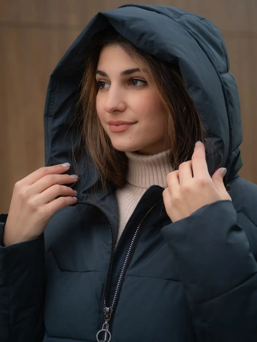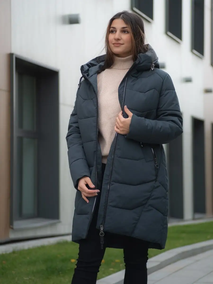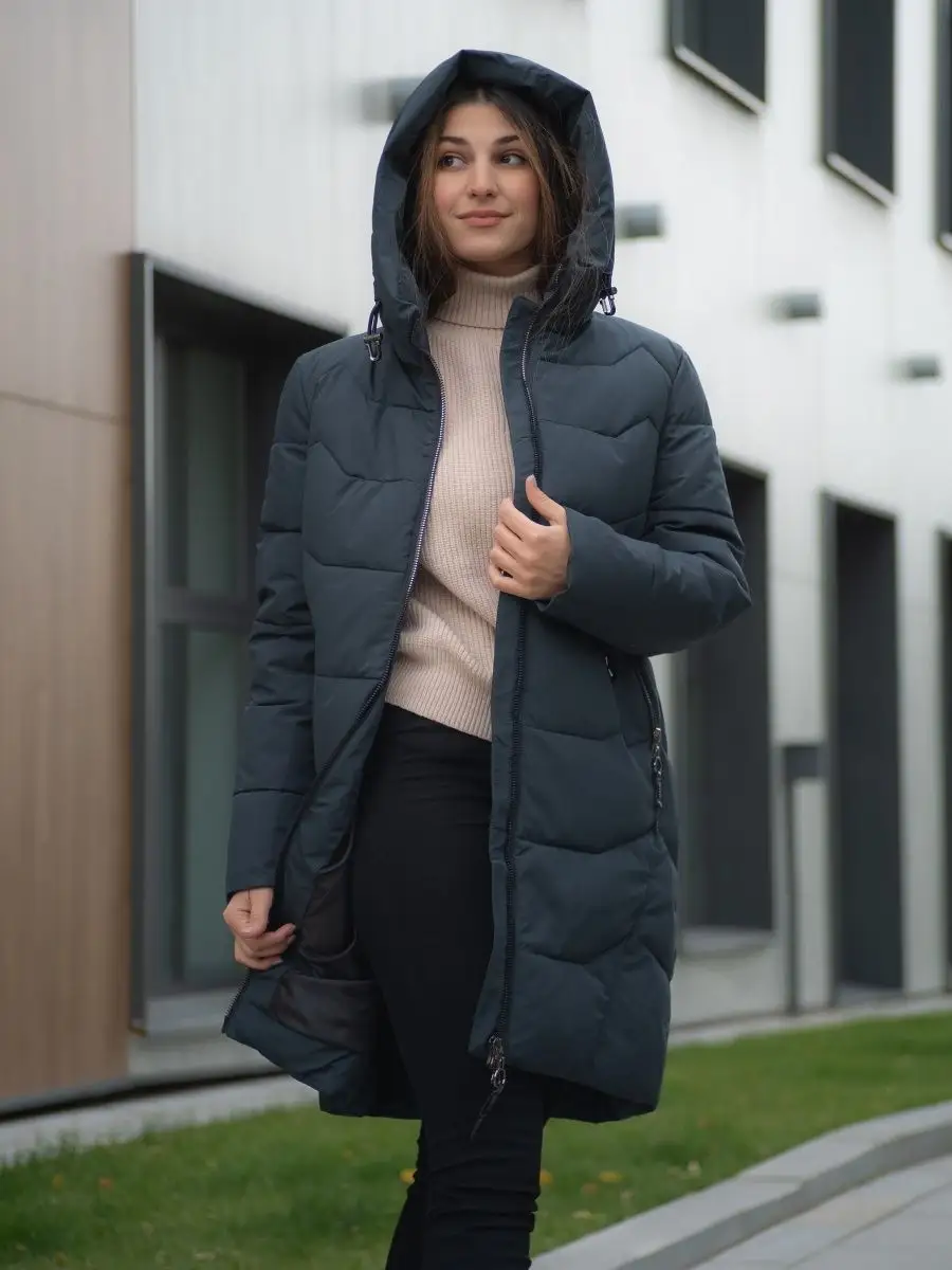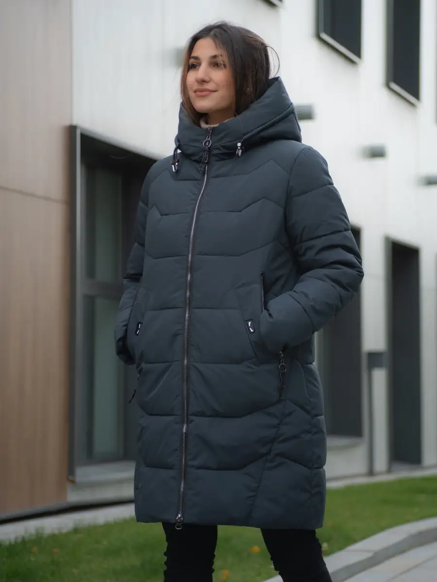 Пуховик длинный с капюшоном Куртка стеганая Парка зимняя
