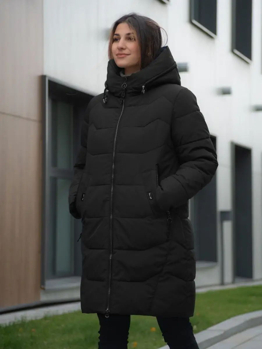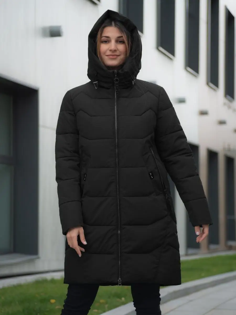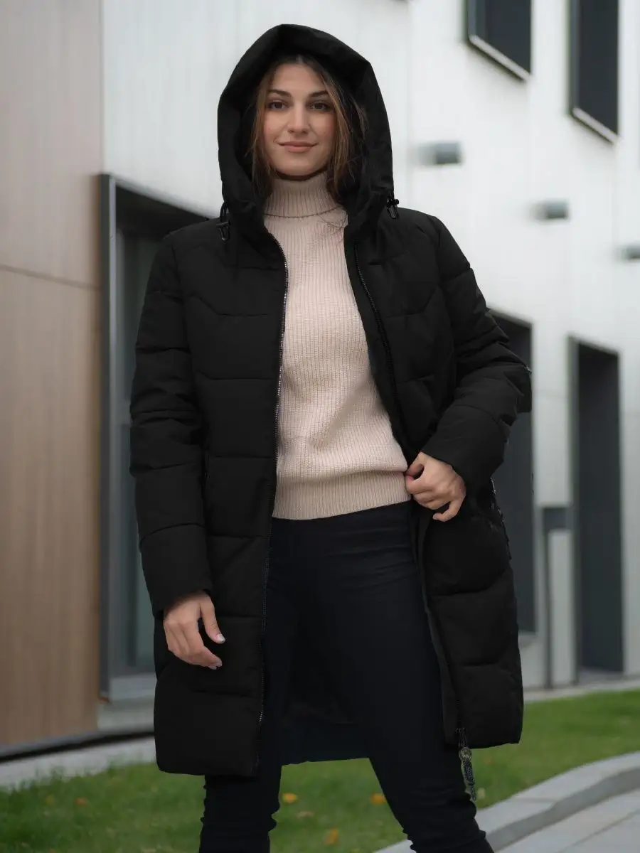 Пуховик длинный с капюшоном Куртка стеганая Парка зимняя