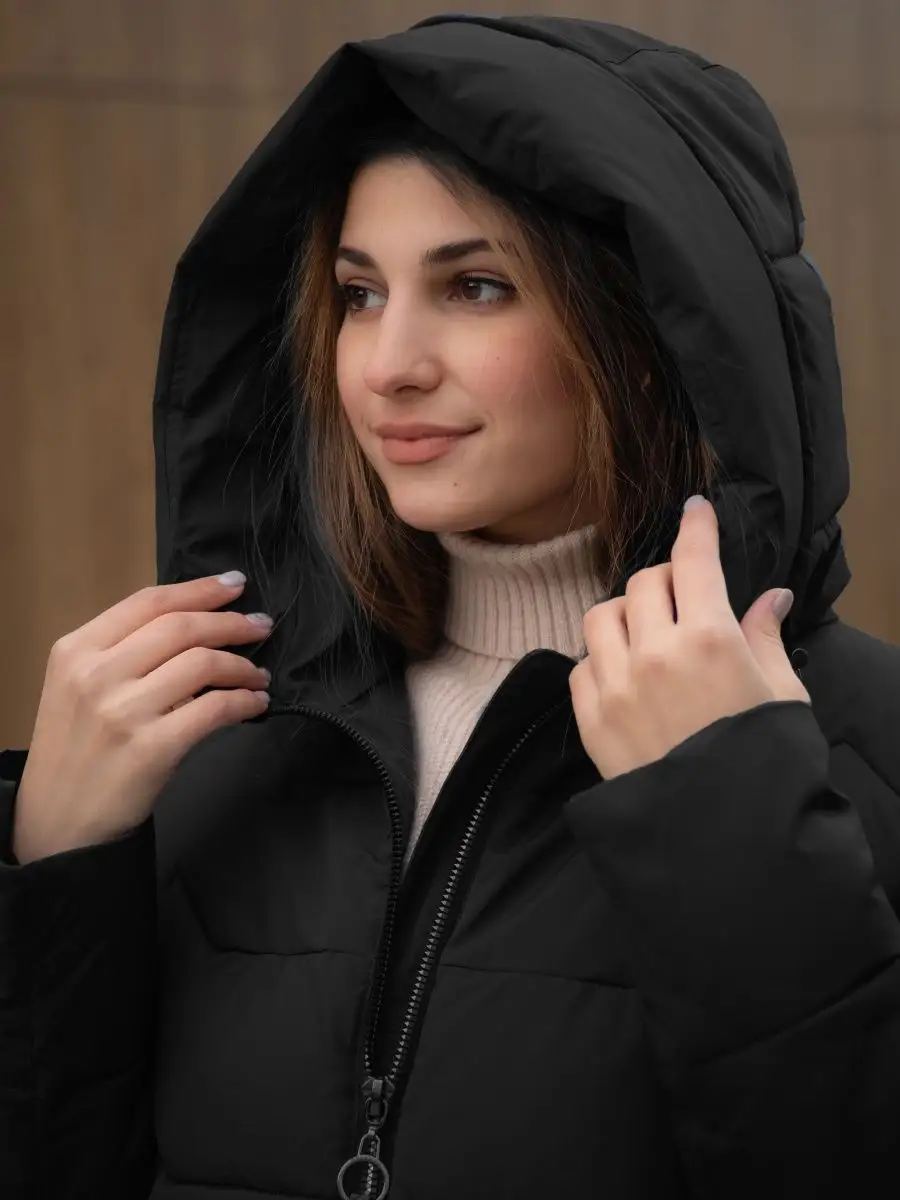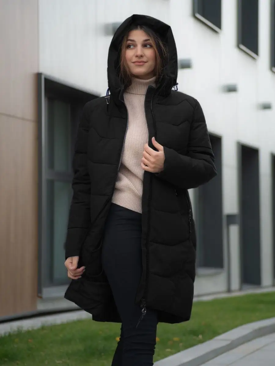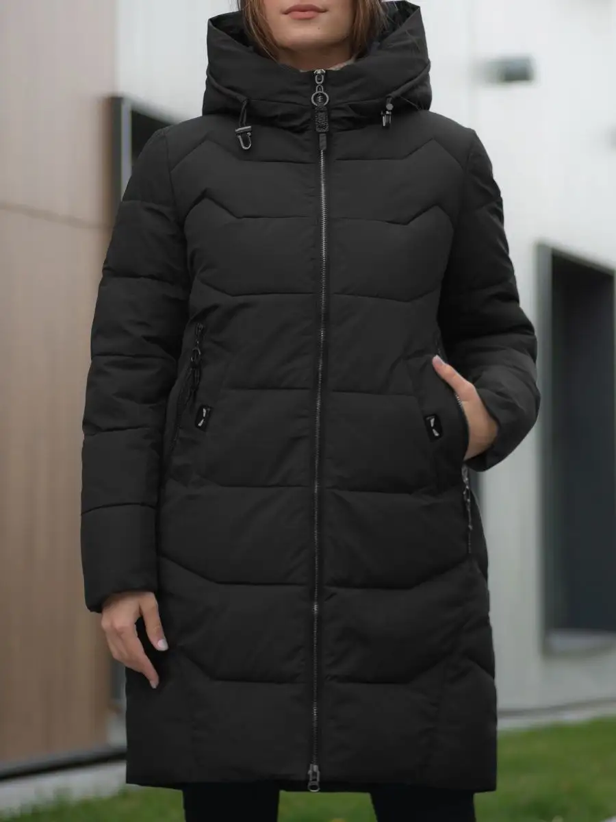 Пуховик длинный с капюшоном Куртка стеганая Парка зимняя