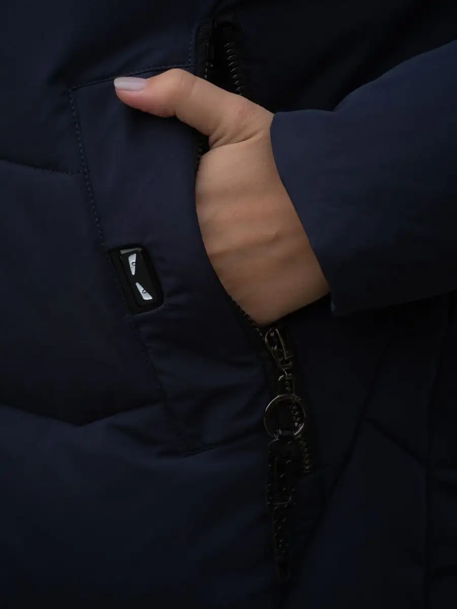 Пуховик длинный с капюшоном Куртка стеганая Парка зимняя