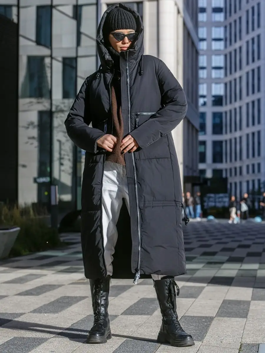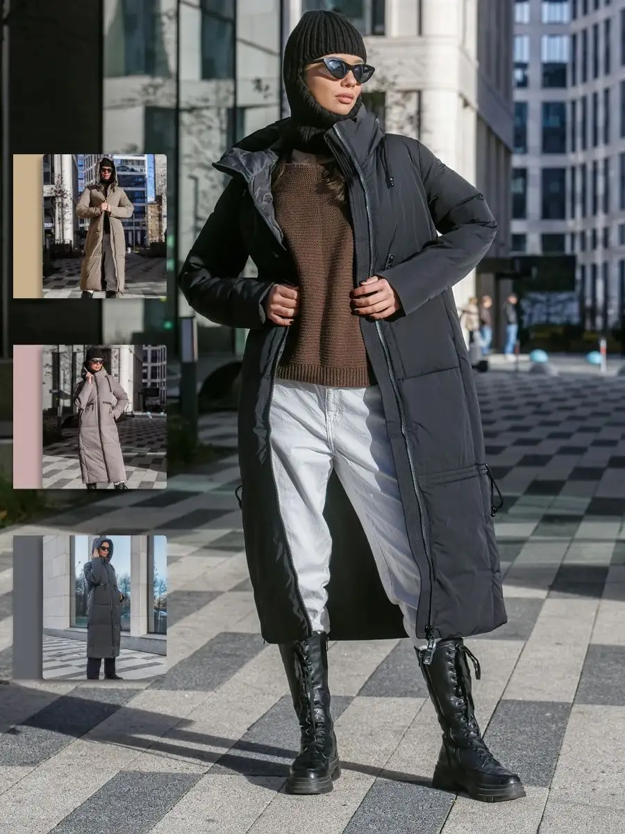 Описание: Стильный современный женский длинный зимний пуховик / пальто с капюшоном, который согреет вас в любые морозы, даже в -30. Фасон подходит одновременно к спортивному, классическому и молодежному стилю. Самая теплая длинная существенно ниже колена, которая сохранит тепло. Есть молния внизу, чтобы расширить пальто внизу. Внутри рукава удобные мягки вязанные удлиненные манжеты резинки, которые дополнительно сохранят комфортную температуру для ваши рук и не будут пропускать холод внутрь. Ткань с водоотталкивающим эффектом, что делает использование этой куртки более универсальным. Теплый несъемный капюшон правильного размера. Наполнитель экологичный – эко пух перо, который обладает более качественными характеристиками, нежели дешевый синтетический материал - синтепон. Выбор цветов: черный, серый, бежевый и розовый. Линейка размеров - макси и оверсайз, большие размеры. Пуховик с капюшоном. Таблица соответствия размеров есть в фотографиях к пальто. Свободный крой позволяет носить беременным. Подкладка плотная, гладкая и приятная на ощупь, выполнена в приятном цвете, сочетающимся с основным тоном этой утепленной парки. Основная молния с качественным мягким замком. В модели курточки этого сезона учтены пожелания, которые были зимой 2021, 2022, улучшены водонепроницаемые свойства. Парка -40