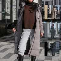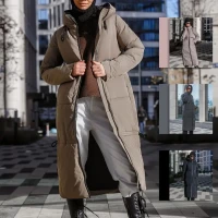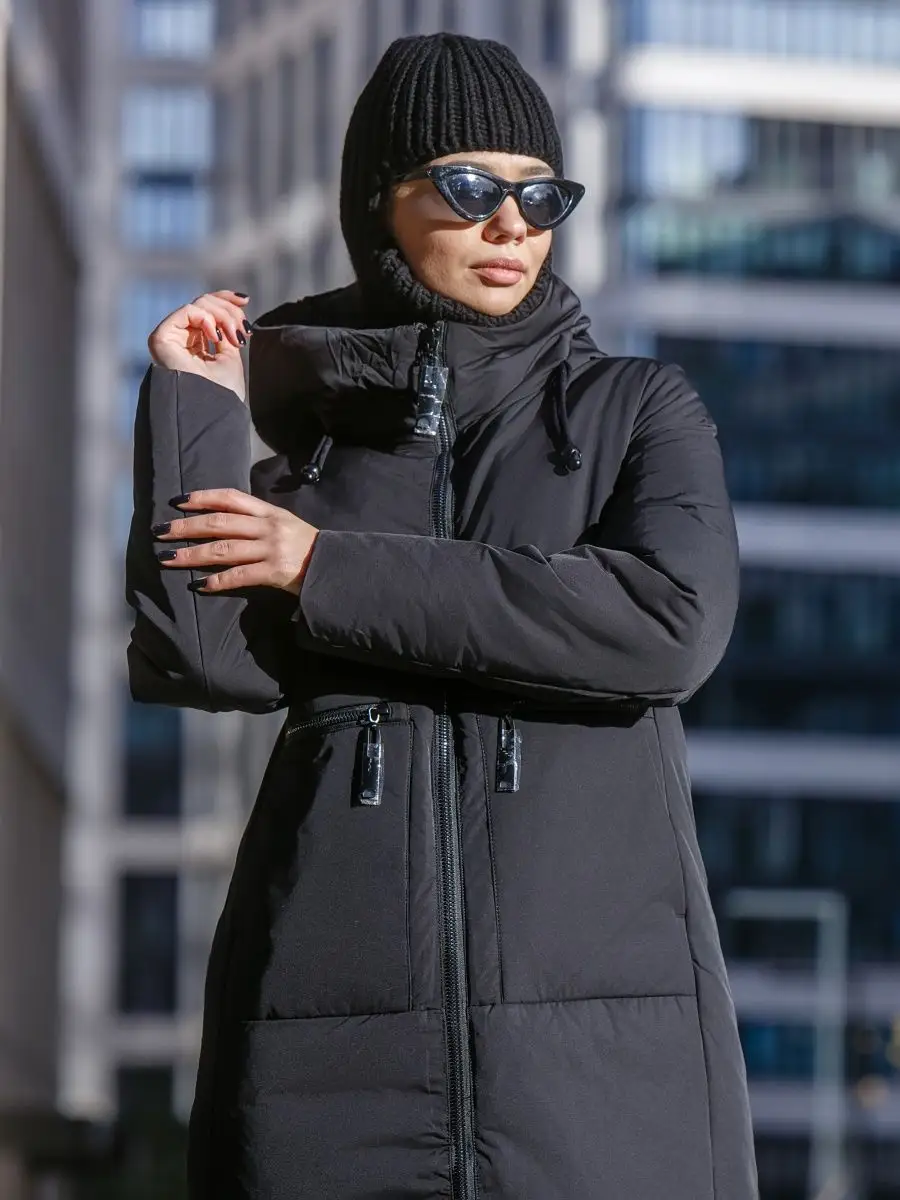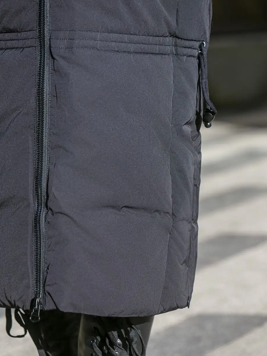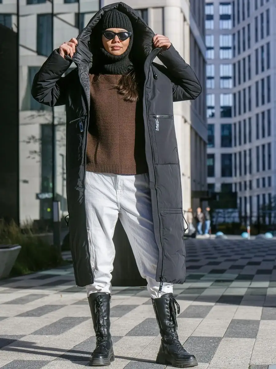 Особенности модели Теплый женский длинный пуховки с капюшоном и стягивающимся низом