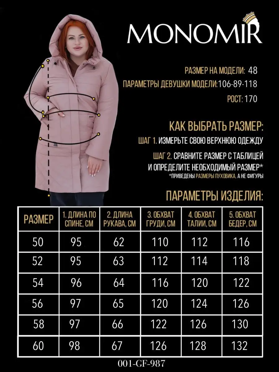 Описание: Распродажа MONOMIR 2023 - событие, которое ждут многие. Ведь только здесь вы сможете приобрести одежду нашего бренда со скидками до 70%! Ликвидация прошлой коллекции создана специально для Вас, не упустите свой шанс! Рекомендуем брать пуховик на РАЗМЕР БОЛЬШЕ. Каким должен быть идеальный пуховик женский зимний длинный? Теплым, эргономичным, удобным, модным и функциональным! А главное – соответствовать образу жизни обладательницы. Девочка-подросток выберет молодежный что-то поярче, девушка на спорте полюбит приталенное и с принтом спортивный, мамы для прогулок тёплый легкий длинный стильный, а вот автоледи выберет укороченный вариант - пуховик женский зимний короткий средней длины, стилизованный под пальто полупальто. Да, и еще чтобы с доставкой и удобством выбора моделей было все отлично. Хороший зимний брендовый пуховик женский с капюшоном – это тепло, красиво, модно! Не нужны лишние карманы, незачем. Два наружных и один – два внутренних, пожалуй, самое то. Пуховик ультралегкий, теплый, непритязательный в стирке и уходе для зимы и поздней осени. Обратите внимание на размеры оверсайз oversize. Пуховик стеганный стеганый с капюшоном из новой коллекции дополнит гардероб на текущий сезон весна -осень 2023 гг. Удлиненные модели до колена - для тех, кто заботится о своем здоровье. Кто хочет и красоту, и пользу. Пуховик унисекс зефирка кожаный даже в мороз не заставит Вас ежиться и кутаться в дополнительные кофты и шали. Высокий воротник, мембрана, объемный плотный капюшон и «родной» теплый пуховик – защитят Вас в стужу и ветреную погоду. Кроме того, красивый женский лаковый глянцевый пуховик дутый - это модно и изящно. Демисезонный зимний осенний в цветах: черный белый зеленый розовый голубой бежевый светлый синий красный фуксия фиолетовый серебристый блестящий сиреневый цветной молочный коричневый серый. Большой выбор материалов в качестве наполнителя для Вашего зимнего пуховика (синтепон, пух, на пуху, с овчиной, кожа, экокожа) – «камень преткновения», что заставляет лишний раз определяться с вариантом выбора. Действительно, чем же наполнен «внутренний мир» Вашего пуховика? А ответ прост. Пуховик зимний женский длинный с капюшоном теплый на зиму и холодную осень из НАТУРАЛЬНОЙ ВЕРБЛЮЖЕЙ ШЕРСТИ - природный наполнитель отлично защищающий от холода. Удлиненный пуховик без меха plus size на капюшоне с поясом и длинными рукавами понравится девочкам подросткам и взрослым беременным девушкам и женщинам. Длинная куртка пальто большого размера xxl xxxl 2xl 3xl на осень, зиму и весну. Короткий большой плюс сайз пуховик женский осенний подарок на новый год. Дутая верхняя одежда парка зимняя женская для повседневной носки и занятий спортом. Свободный оверсайз пуховик не боится стирки, легкий, теплый и очень удобный. Облегченный ультралегкий наполнитель тинсулейт с увеличением теплоемкости - не холлофайбер с натуральным мехом. Зимний пуховик с принтом тонкий не укороченный глянцевый, рассчитан до -30 градусов. Теплая зимняя big для демисезонного периода и в весеннюю дождливую погоду. Модный спортивный oversize стеганый стеганный пуховик больших размеров черный бежевый розовый лучше, чем жилетка или пальто женские демисезонные или куртка женская демисезон тренч шуба и дубленка. ШЕРСТЬ ВЕРБЛЮДА, благодаря полой структуре своих волосков, защищает от хо