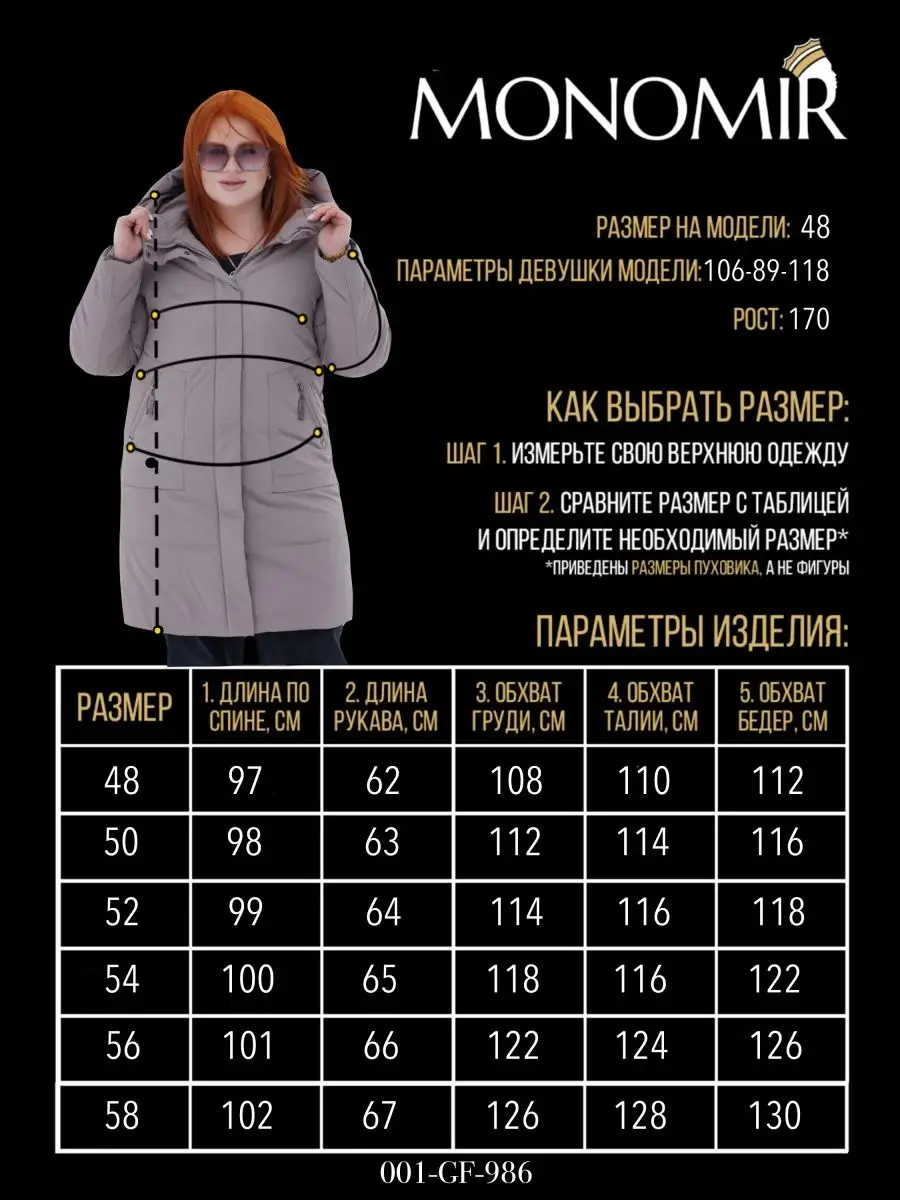 Описание: Распродажа MONOMIR 2023 - событие, которое ждут многие. Ведь только здесь вы сможете приобрести одежду нашего бренда со скидками до 70%! Ликвидация прошлой коллекции создана специально для Вас, не упустите свой шанс! Рекомендуем брать пуховик на РАЗМЕР БОЛЬШЕ. Каким должен быть идеальный пуховик женский зимний длинный? Теплым, эргономичным, удобным, модным и функциональным! А главное – соответствовать образу жизни обладательницы. Девочка-подросток выберет молодежный что-то поярче, девушка на спорте полюбит приталенное и с принтом спортивный, мамы для прогулок тёплый легкий длинный стильный, а вот автоледи выберет укороченный вариант - пуховик женский зимний короткий средней длины, стилизованный под пальто полупальто. Да, и еще чтобы с доставкой и удобством выбора моделей было все отлично. Хороший зимний брендовый пуховик женский с капюшоном – это тепло, красиво, модно! Не нужны лишние карманы, незачем. Два наружных и один – два внутренних, пожалуй, самое то. Пуховик ультралегкий, теплый, непритязательный в стирке и уходе для зимы и поздней осени. Обратите внимание на размеры оверсайз oversize. Пуховик стеганный стеганый с капюшоном из новой коллекции дополнит гардероб на текущий сезон весна -осень 2023 гг. Удлиненные модели до колена - для тех, кто заботится о своем здоровье. Кто хочет и красоту, и пользу. Пуховик унисекс зефирка кожаный даже в мороз не заставит Вас ежиться и кутаться в дополнительные кофты и шали. Высокий воротник, мембрана, объемный плотный капюшон и «родной» теплый пуховик – защитят Вас в стужу и ветреную погоду. Кроме того, красивый женский лаковый глянцевый пуховик дутый - это модно и изящно. Демисезонный зимний осенний в цветах: черный белый зеленый розовый голубой бежевый светлый синий красный фуксия фиолетовый серебристый блестящий сиреневый цветной молочный коричневый серый. Большой выбор материалов в качестве наполнителя для Вашего зимнего пуховика (синтепон, пух, на пуху, с овчиной, кожа, экокожа) – «камень преткновения», что заставляет лишний раз определяться с вариантом выбора. Действительно, чем же наполнен «внутренний мир» Вашего пуховика? А ответ прост. Пуховик зимний женский длинный с капюшоном теплый на зиму и холодную осень из НАТУРАЛЬНОЙ ВЕРБЛЮЖЕЙ ШЕРСТИ - природный наполнитель отлично защищающий от холода. Удлиненный пуховик без меха plus size на капюшоне с поясом и длинными рукавами понравится девочкам подросткам и взрослым беременным девушкам и женщинам. Длинная куртка пальто большого размера xxl xxxl 2xl 3xl на осень, зиму и весну. Короткий большой плюс сайз пуховик женский осенний подарок на новый год. Дутая верхняя одежда парка зимняя женская для повседневной носки и занятий спортом. Свободный оверсайз пуховик не боится стирки, легкий, теплый и очень удобный. Облегченный ультралегкий наполнитель тинсулейт с увеличением теплоемкости - не холлофайбер с натуральным мехом. Зимний пуховик с принтом тонкий не укороченный глянцевый, рассчитан до -30 градусов. Теплая зимняя big для демисезонного периода и в весеннюю дождливую погоду. Модный спортивный oversize стеганый стеганный пуховик больших размеров черный бежевый розовый лучше, чем жилетка или пальто женские демисезонные или куртка женская демисезон тренч шуба и дубленка. ШЕРСТЬ ВЕРБЛЮДА, благодаря полой структуре своих волосков, защищает от хо
