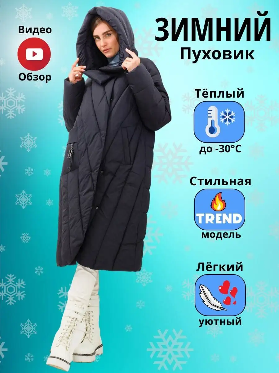 Пуховик женский зимний длинный 46-54 Пальто зимнее женское