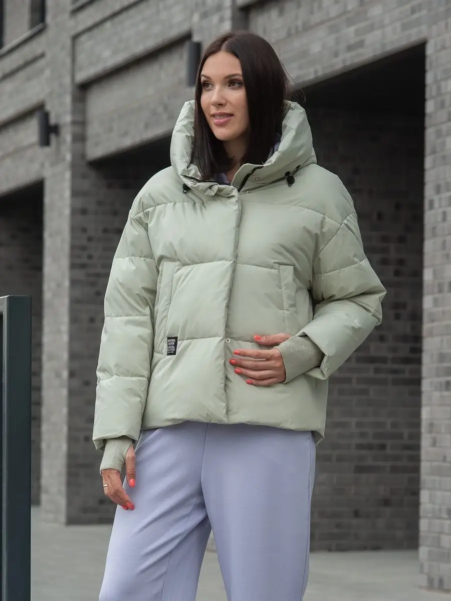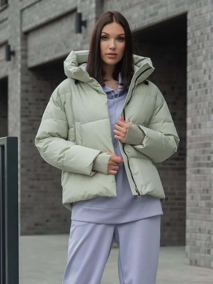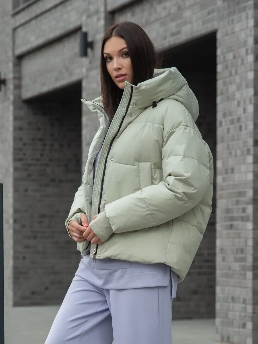 Пуховик женский зимний короткий куртка оверсайз с капюшоном.