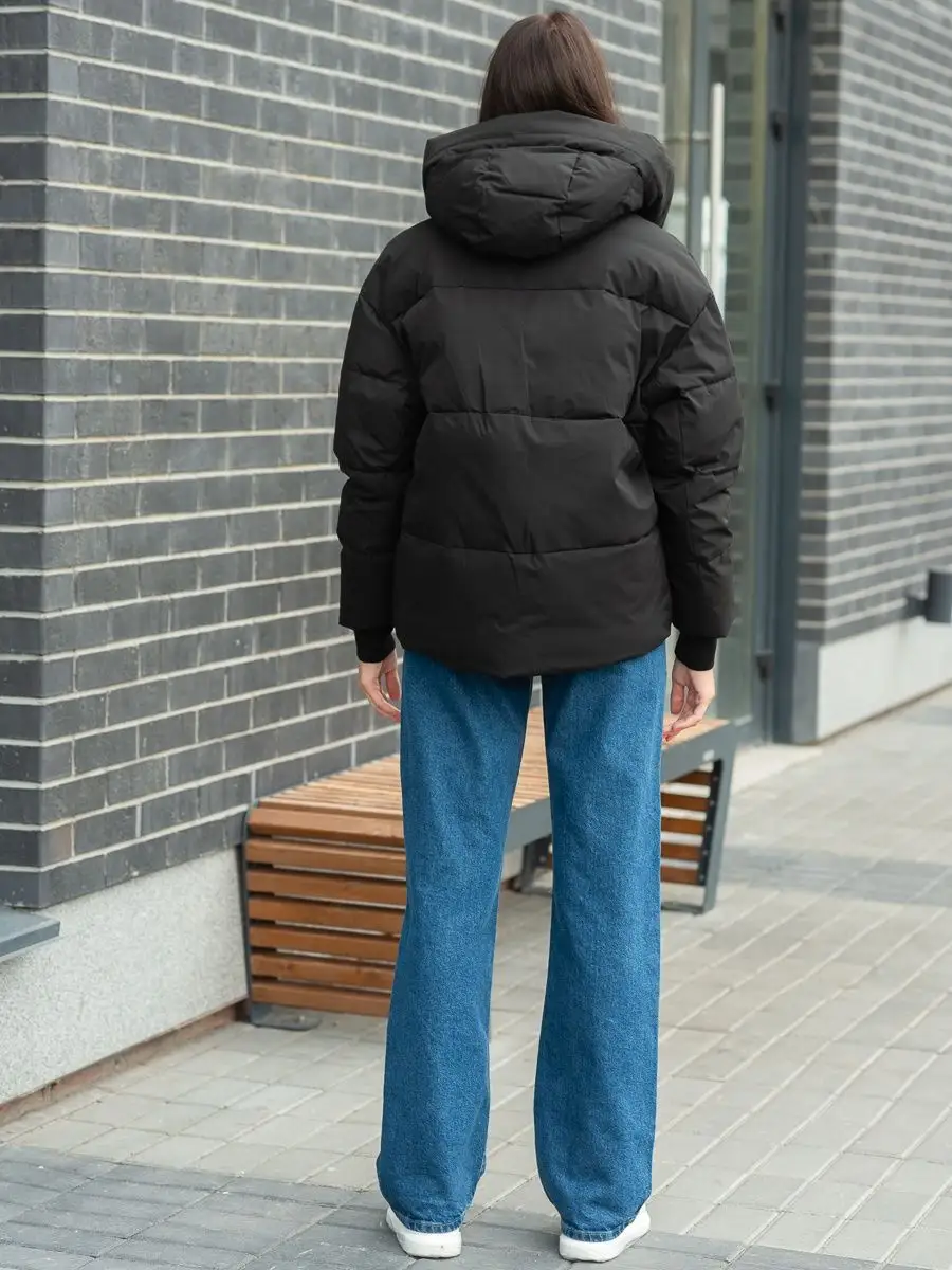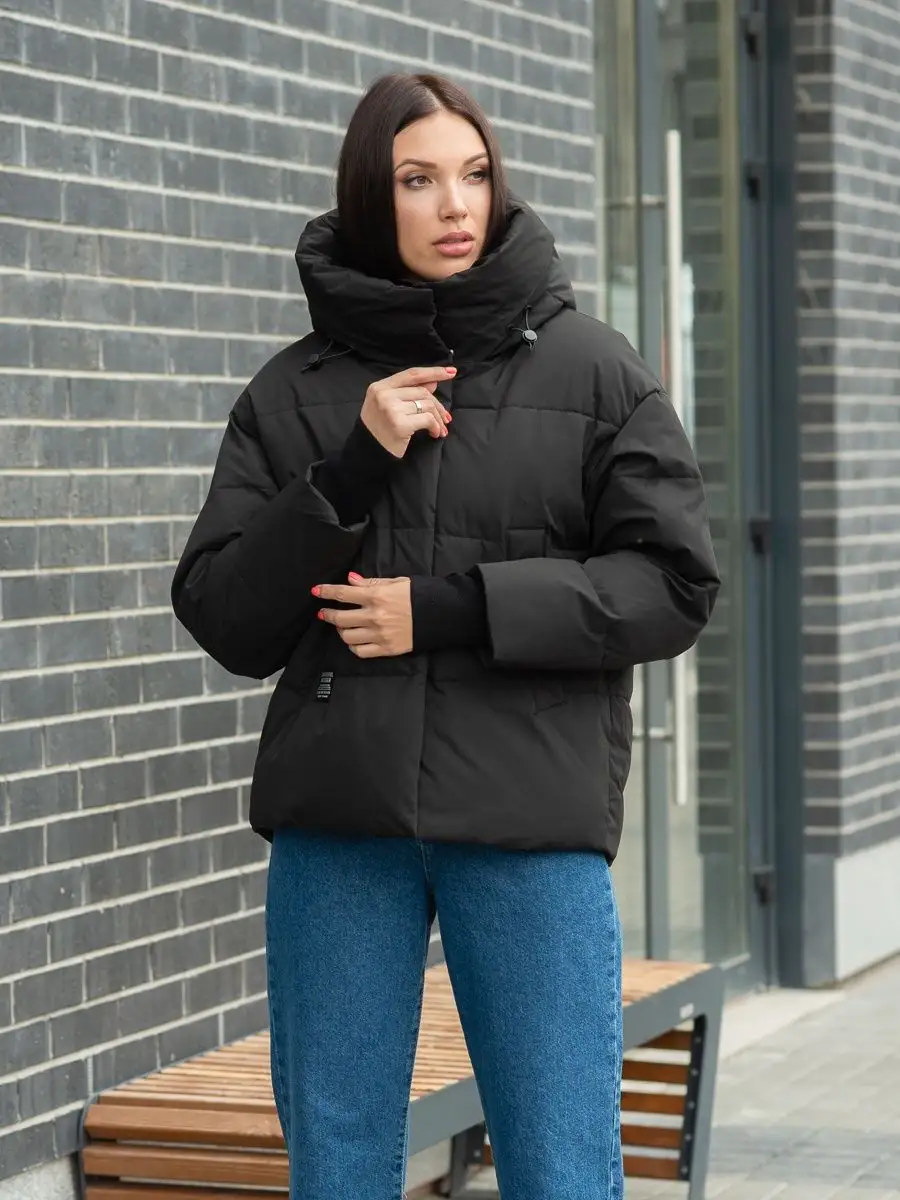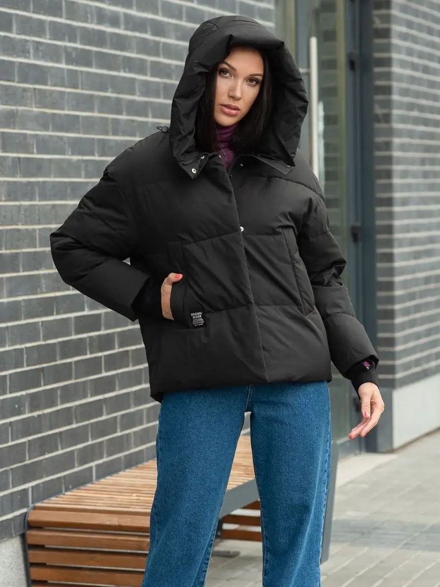 Пуховик женский зимний короткий куртка оверсайз с капюшоном.