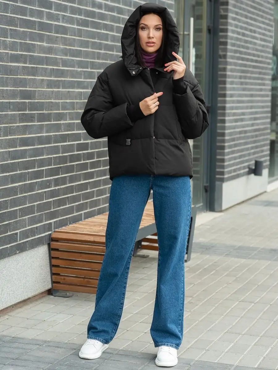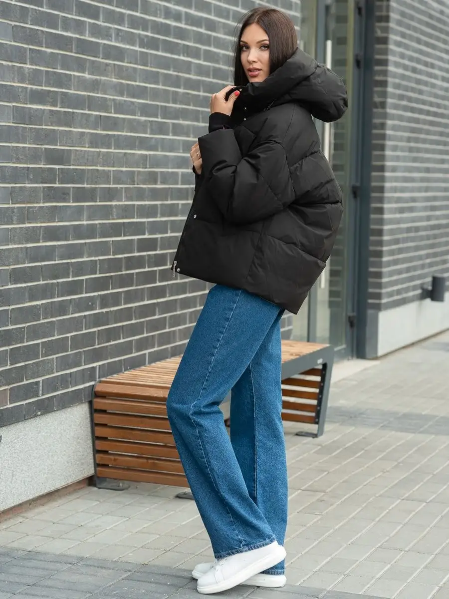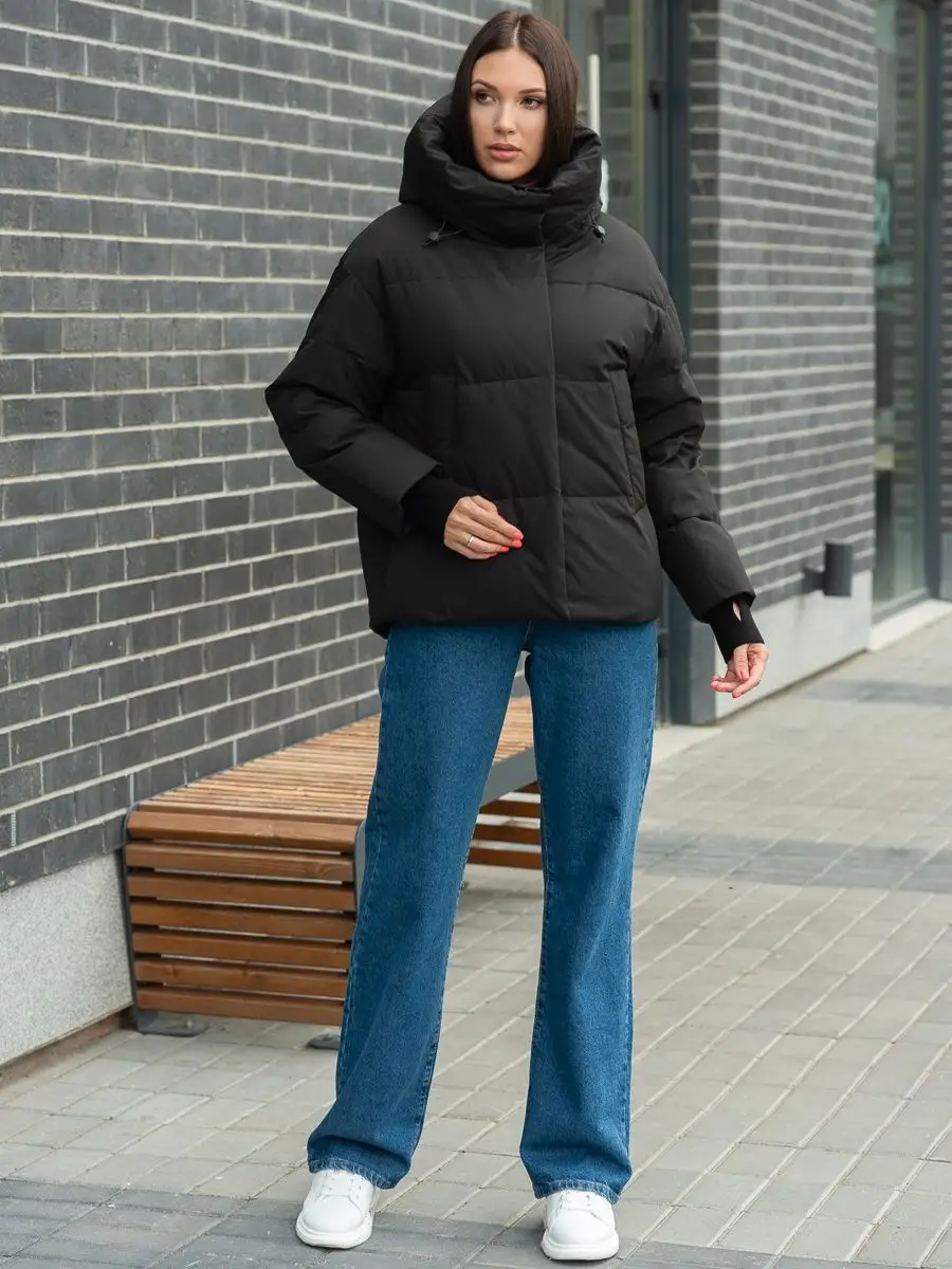 Пуховик женский зимний короткий куртка оверсайз с капюшоном.
