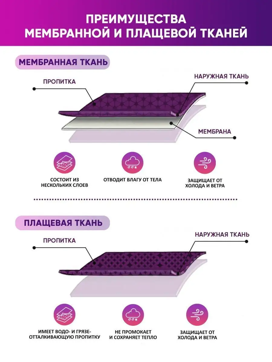 Особенности модели Мембранная водоотталкивающая ткань.