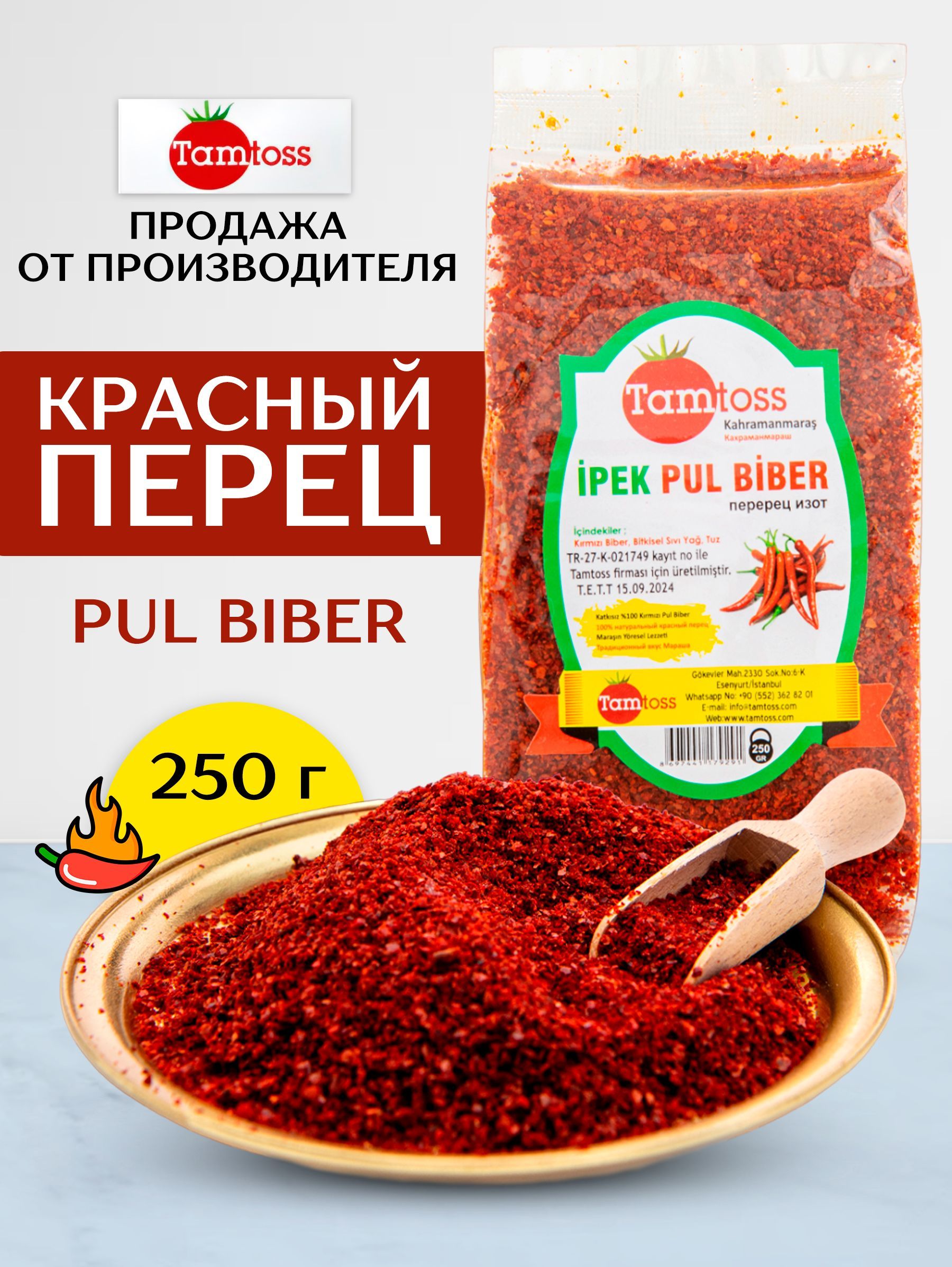 Описание: Пул бибер (измельченный перец) это известный под названиями Aleppo pepper в английском языке и pul biber в турецком, пул бибер - это сорт перца, особенно используемый в качестве специи в восточной-средиземноморской кухне. Когда турецкий перец созревает, его семена извлекаются, а плод трется.