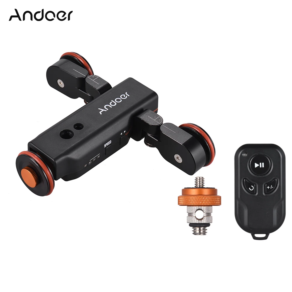 Модернизированный механизированная камера Долли со шкалой индикации, 3 скоростями (2,4 см/2,6 см/2,8 см/с); Поддержка двигаться в противоположном направлении; Колеса угол 180 ° регулируемый, вы можете достичь творческого кругового маршрута/прямого движения. Идеальный Авто Долли для промежутка времени/Макро/низкий угол съемки видео.