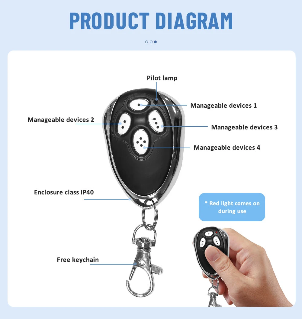 Гаражная дверь Пульт дистанционного управления Беспроводной продукт Материал Abs Автомобильный ключ Гаражная дверь Совместимость Удобный пульт дистанционного управления Дверные перила