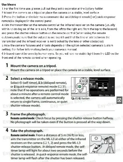 Номер модели Infrared Controller for Nikon Cameras