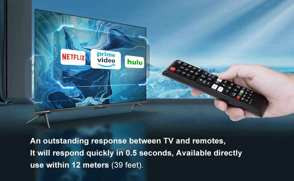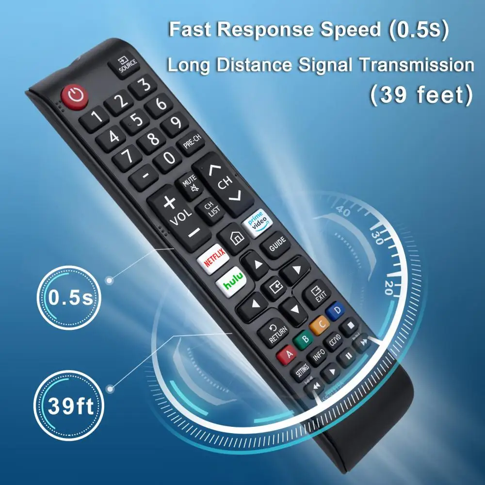 【Быстрый отклик】 Это обновленный инфракрасный пульт дистанционного управления для телевизоров Samsung. Выдающийся отклик между телевизором и пультами дистанционного управления, он быстро реагирует за 0,5 секунды, доступен для прямого использования в пределах 12 метров (39 футов).