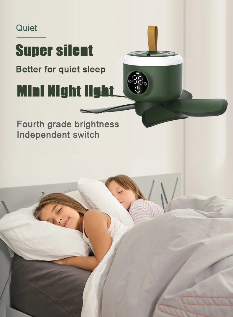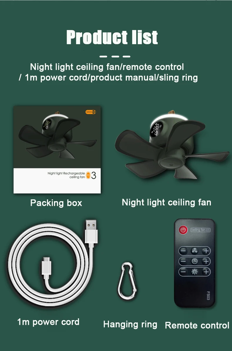 (Перезаряжаемый вентилятор с мягкими резиновыми краями, ночник, пульт дистанционного управления, время, Многоскоростной ветер)