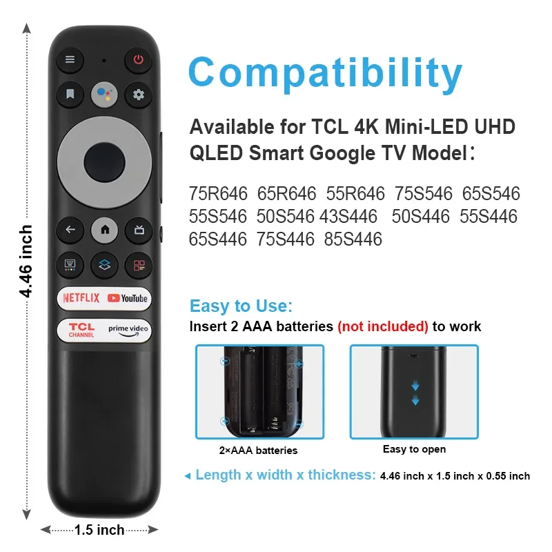 Пульт дистанционного управления RC902N FMR1 с функцией Bluetooth и голосовым управлением используется для телевизоров TCL 4K Qled 75R646 65R646 55R646 75S546 65S546