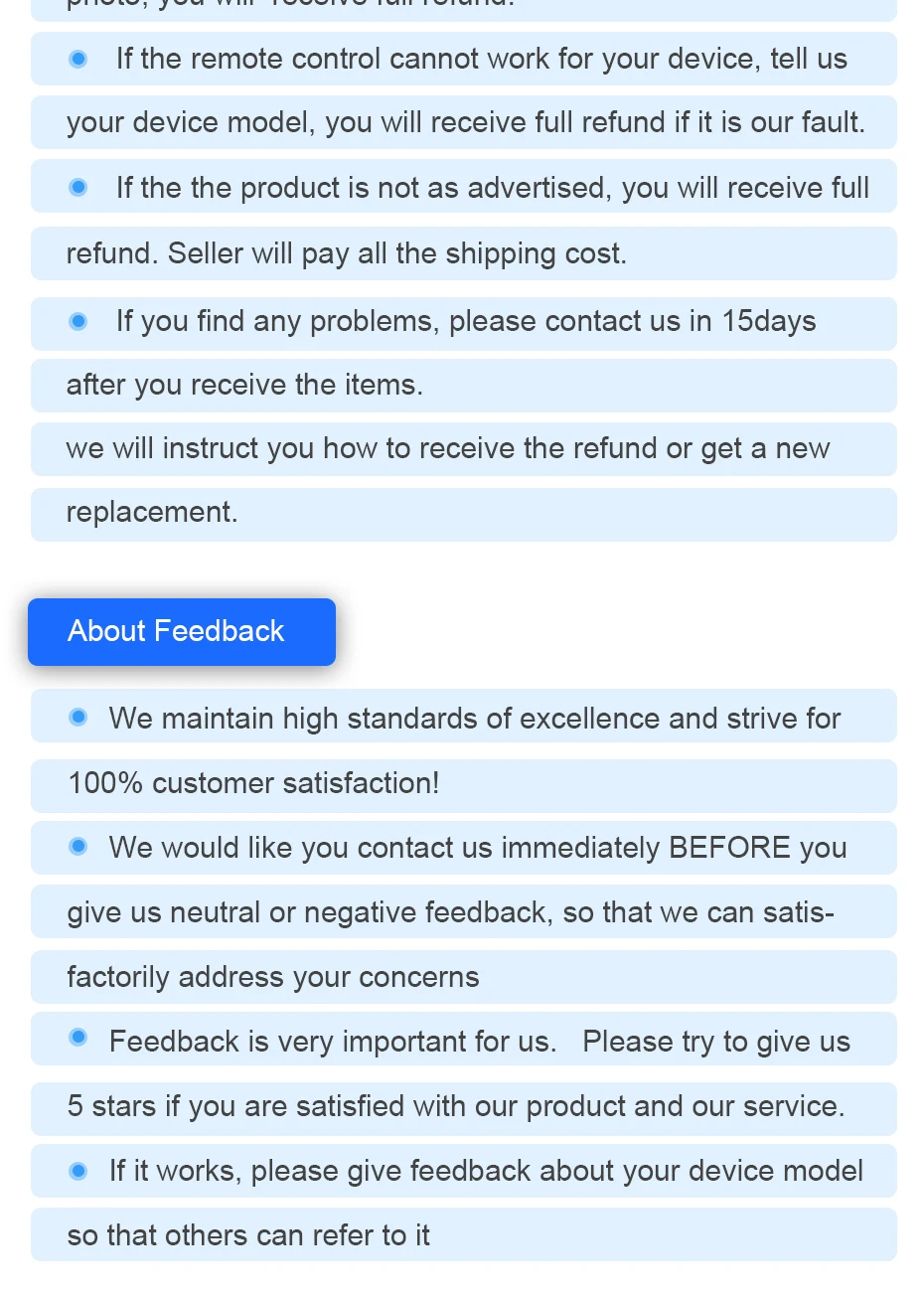 Если вы не получили товар в течение 50 дней, сообщите нам об этом, и мы вернем вам всю оплату. Или повторная Отправка для вас