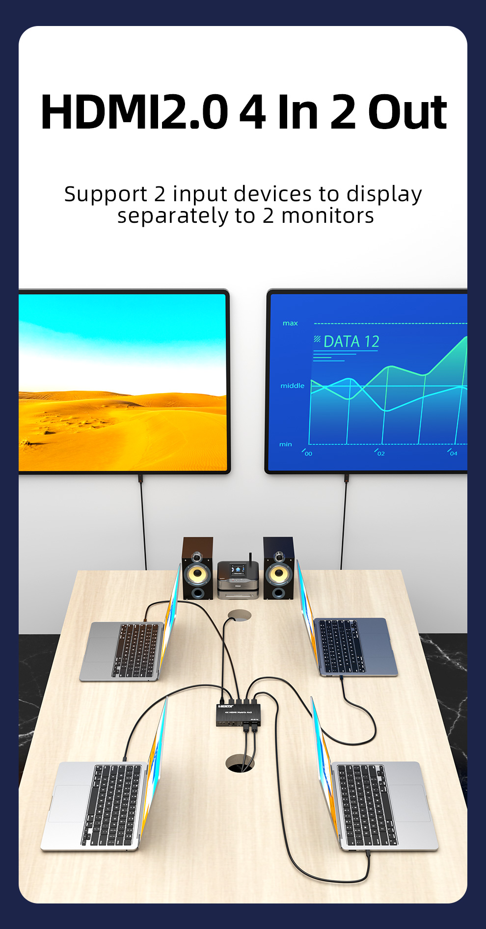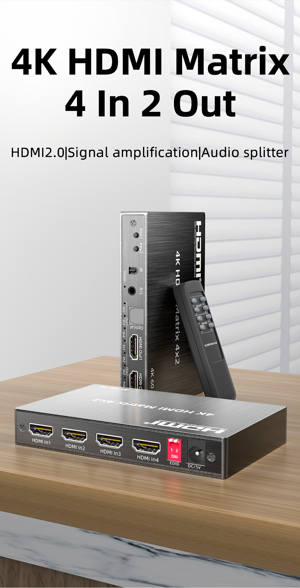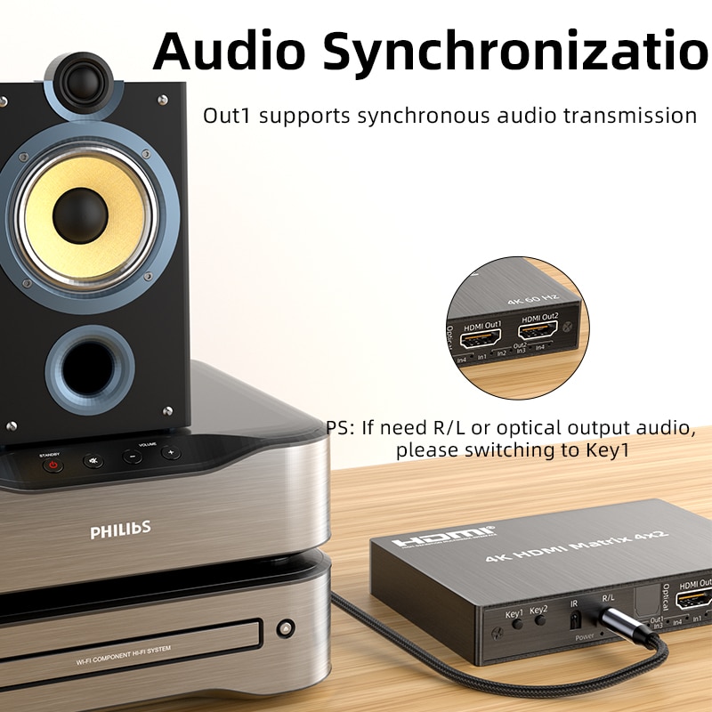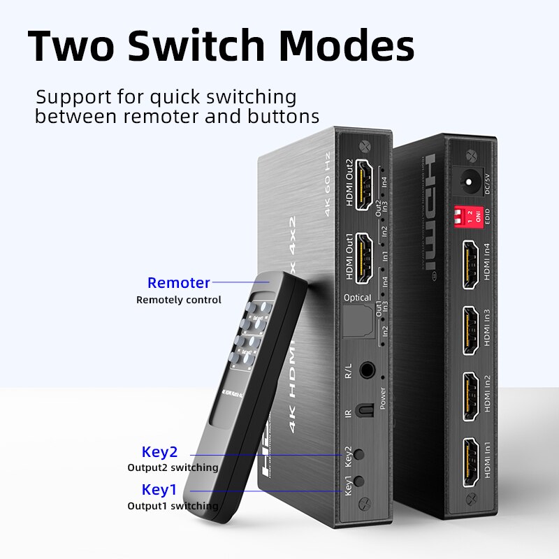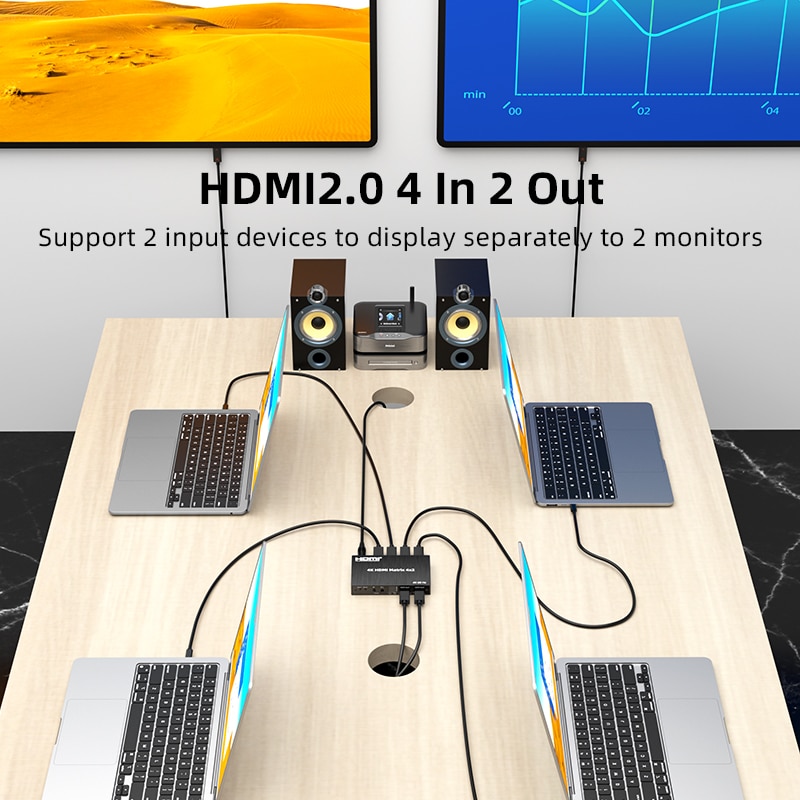 Пульт дистанционного управления Unnlink 4K 60 Гц HDMI матрица 4x2 видео переключатель сплиттер 4 в 2 выход с оптическим Toslink 3,5 мм R/L аудио ИК пульт дистанционного управления