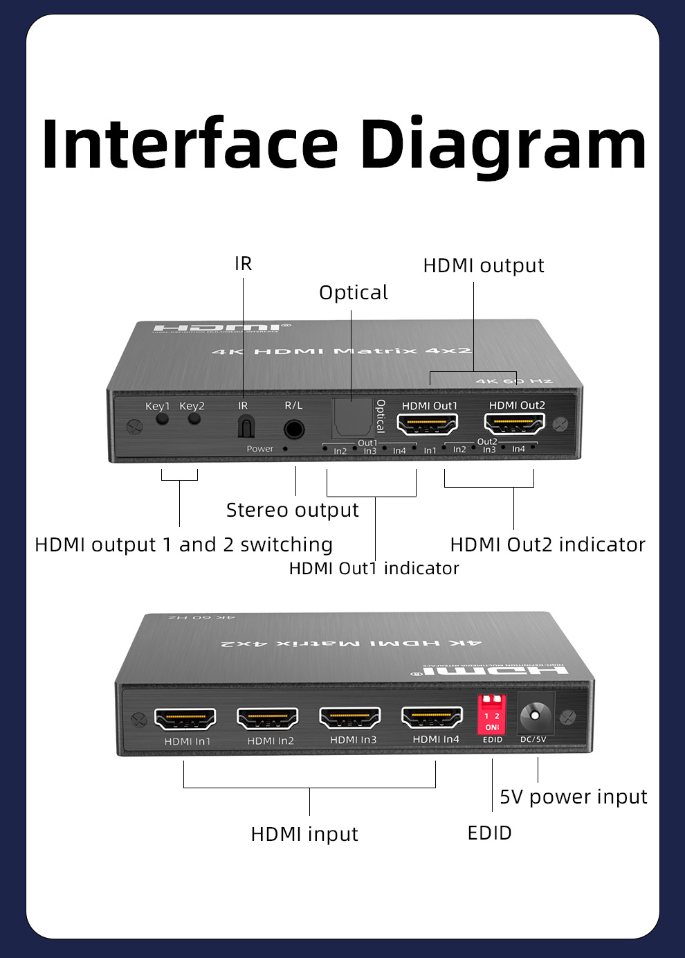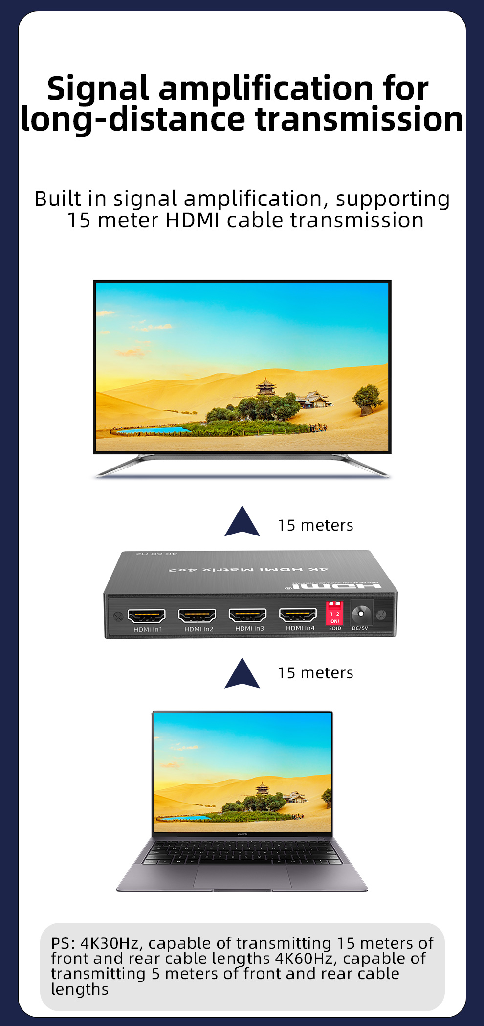 4K60Hz, поддержка входа 5 метров и выхода 5 метров