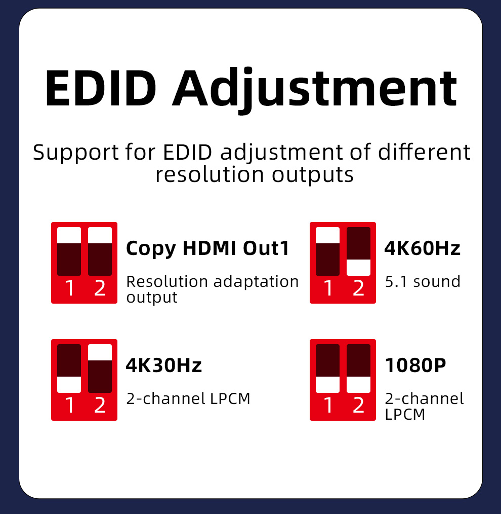 Поддержка EDID-настройки различных выходов разрешения