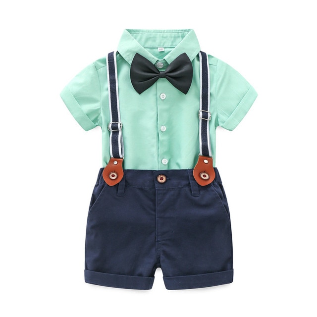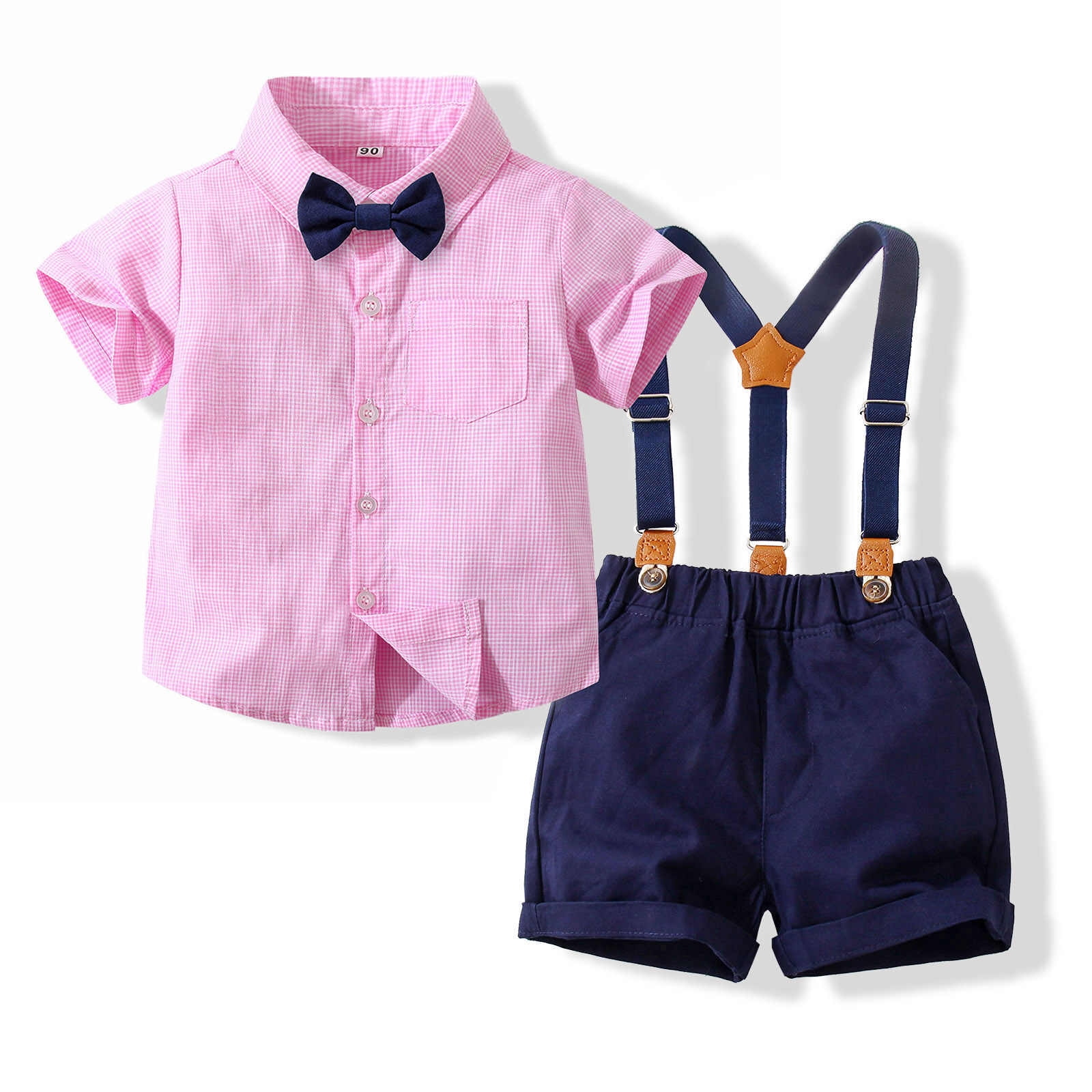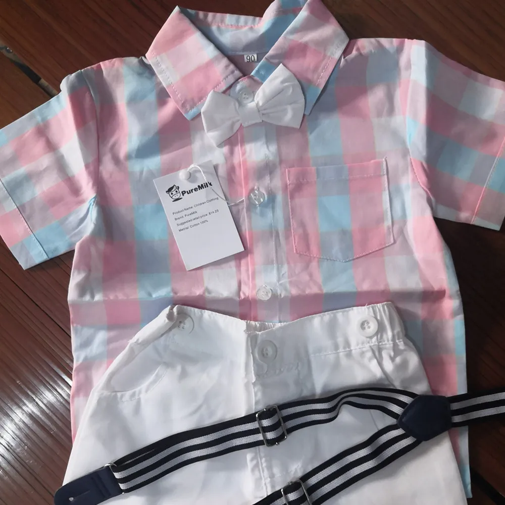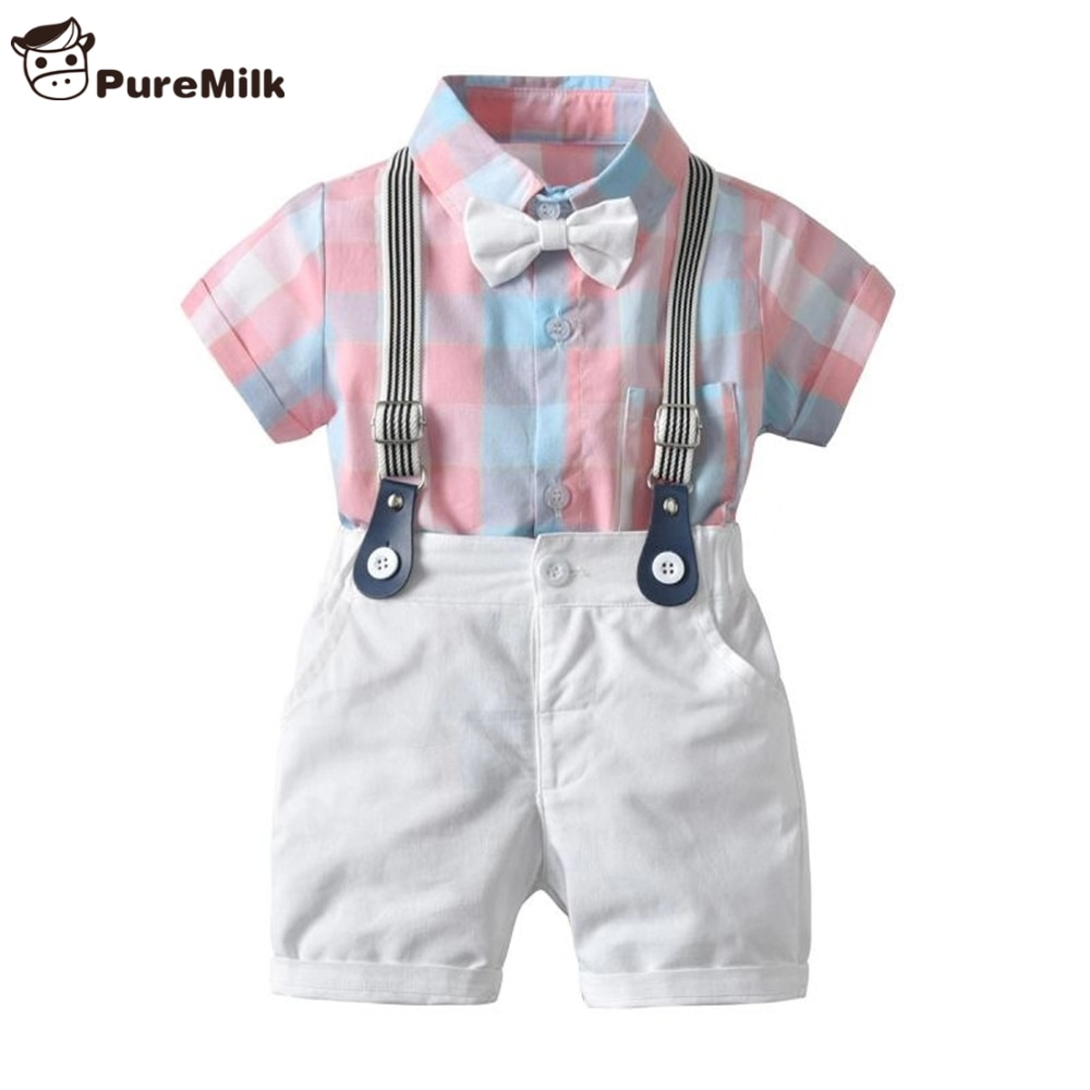 PureMilk/Летняя Одежда для новорожденных, рубашка с бантом и полосатая розовая одежда, комплект из 4 предметов, одежда для маленьких мальчиков