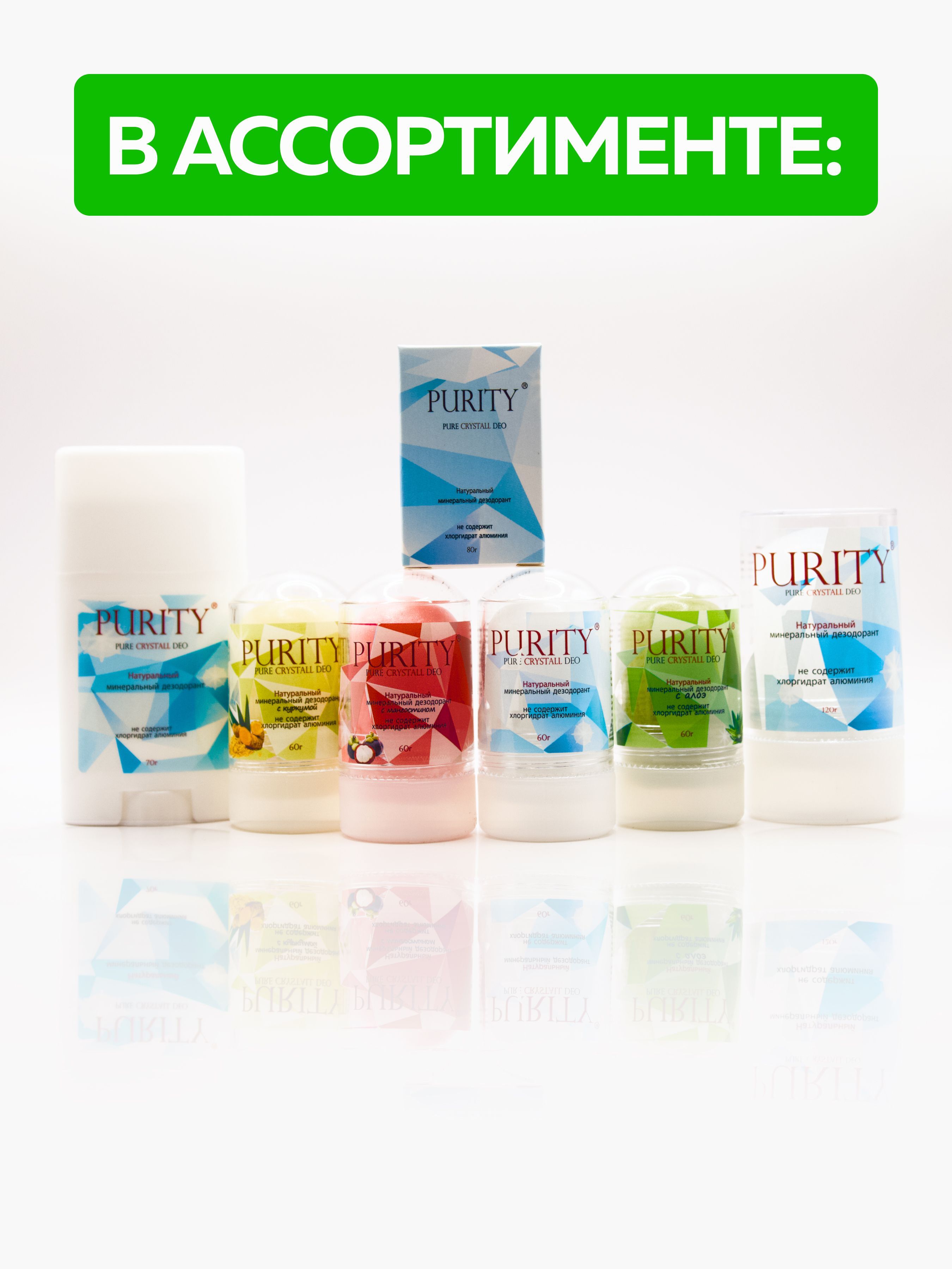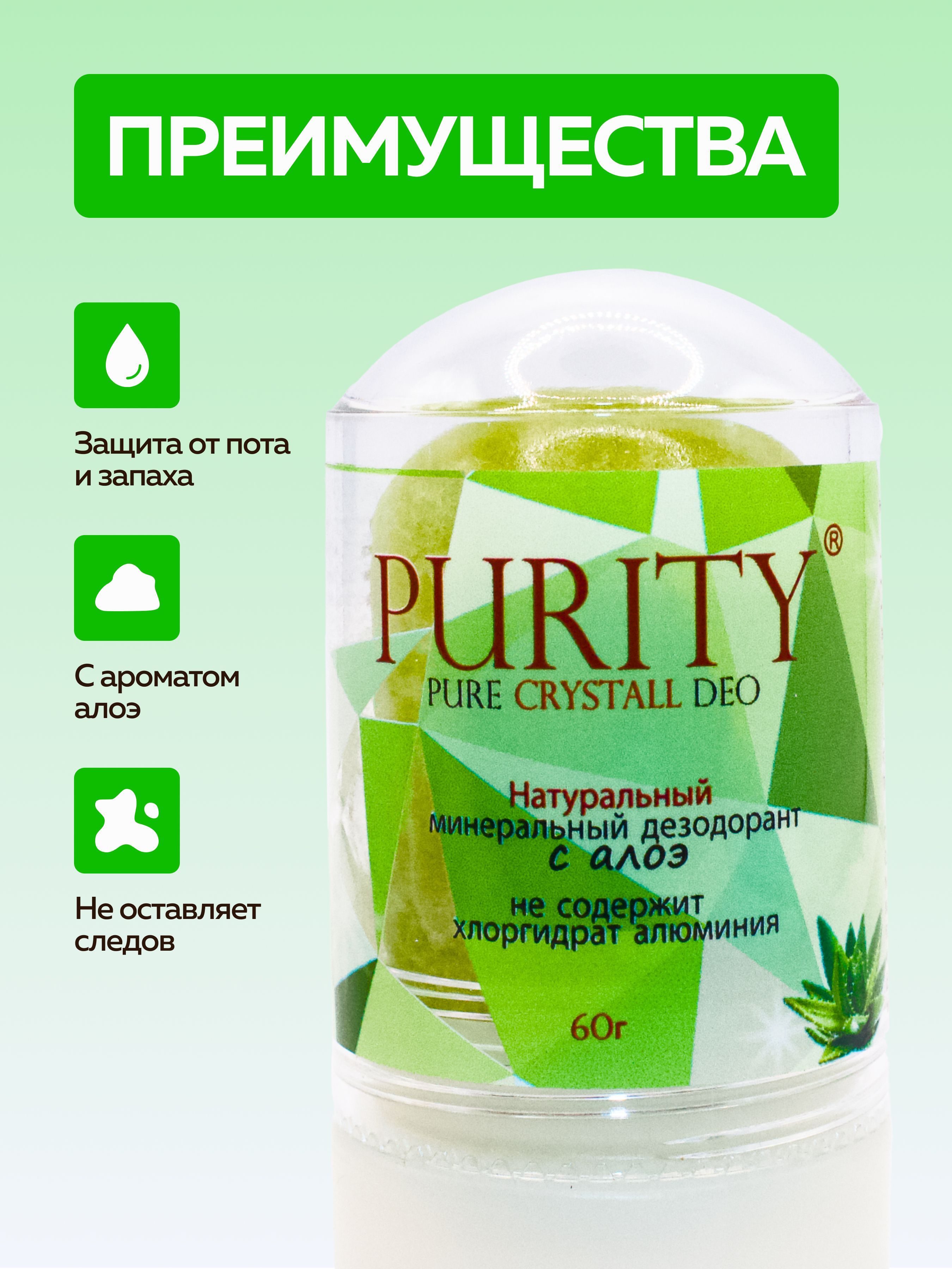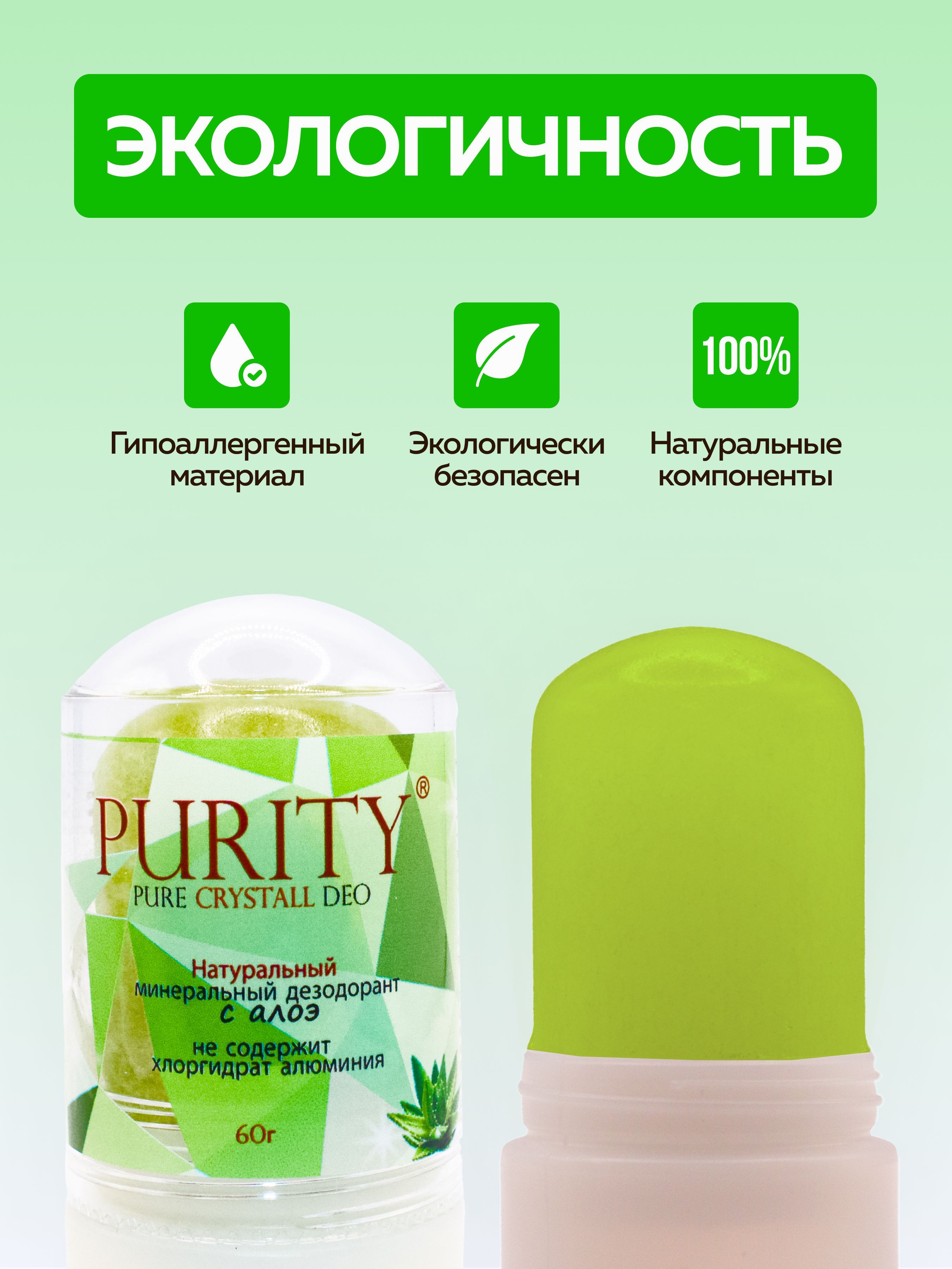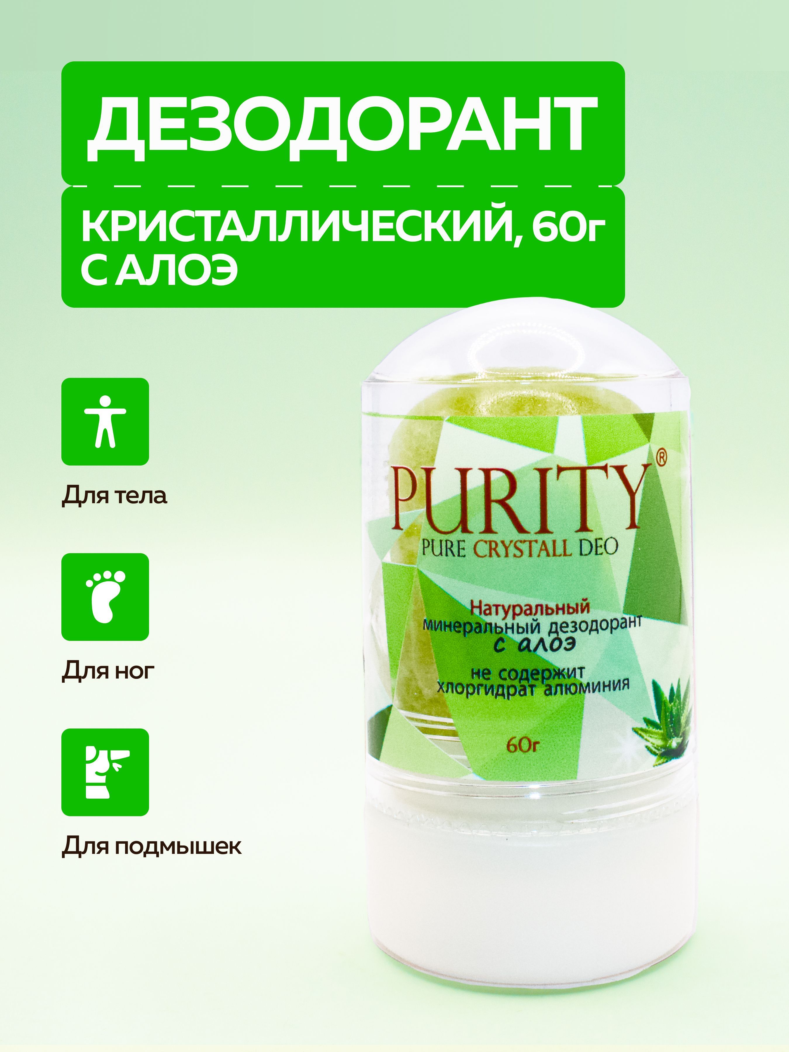 PURITY / Кристалл - 100 % натуральный минеральный дезодорант, стик с Алоэ 60 г