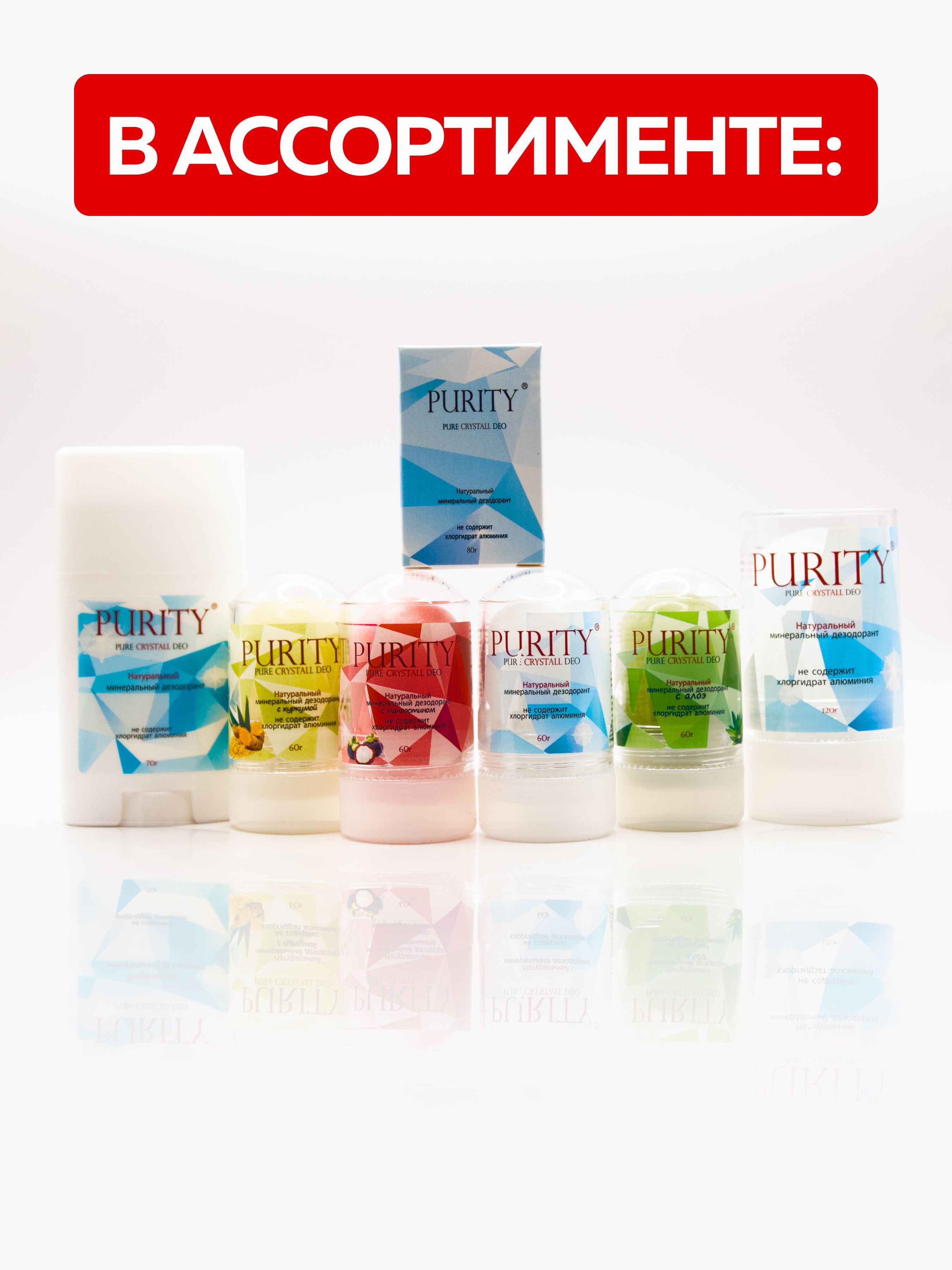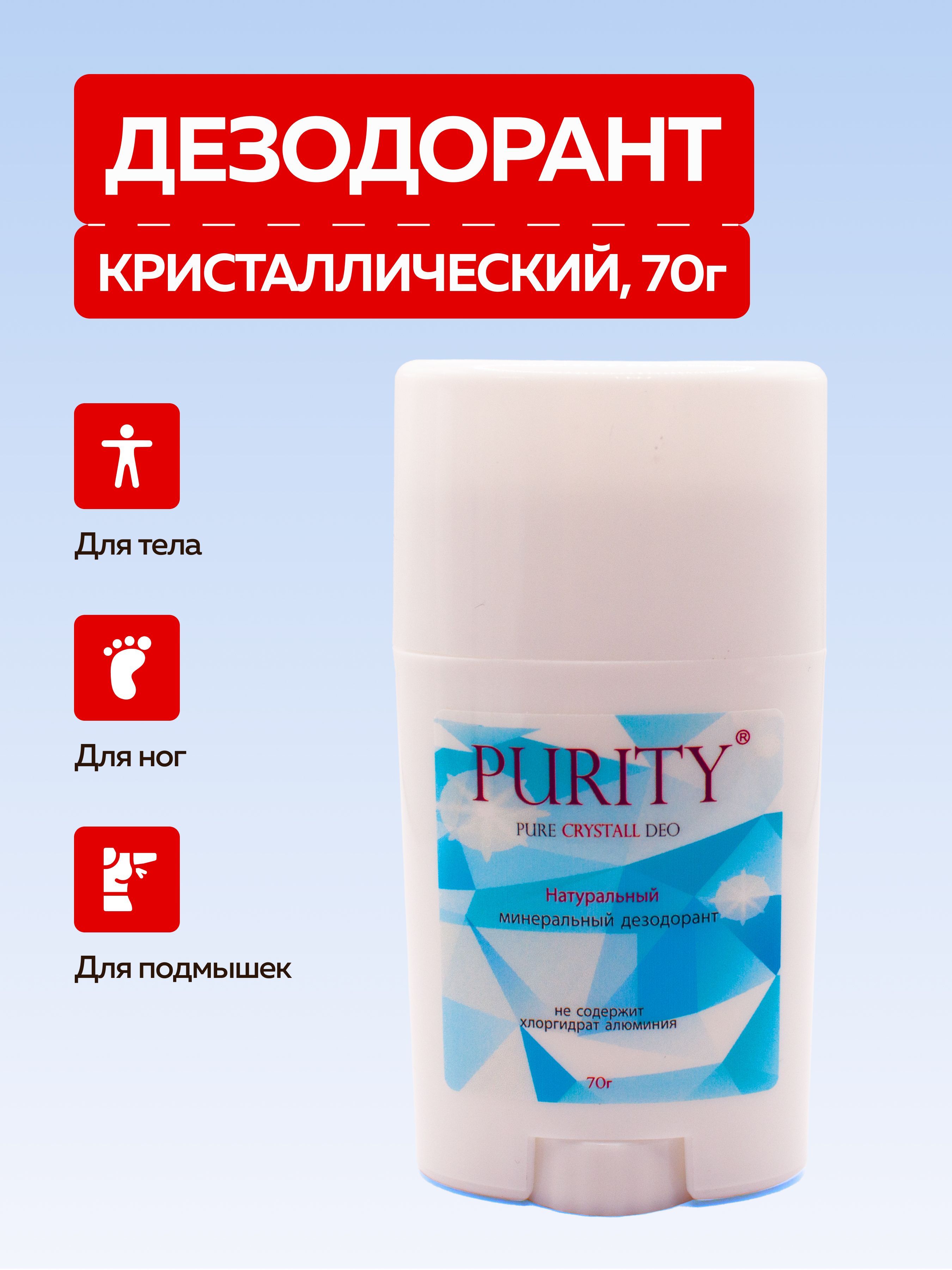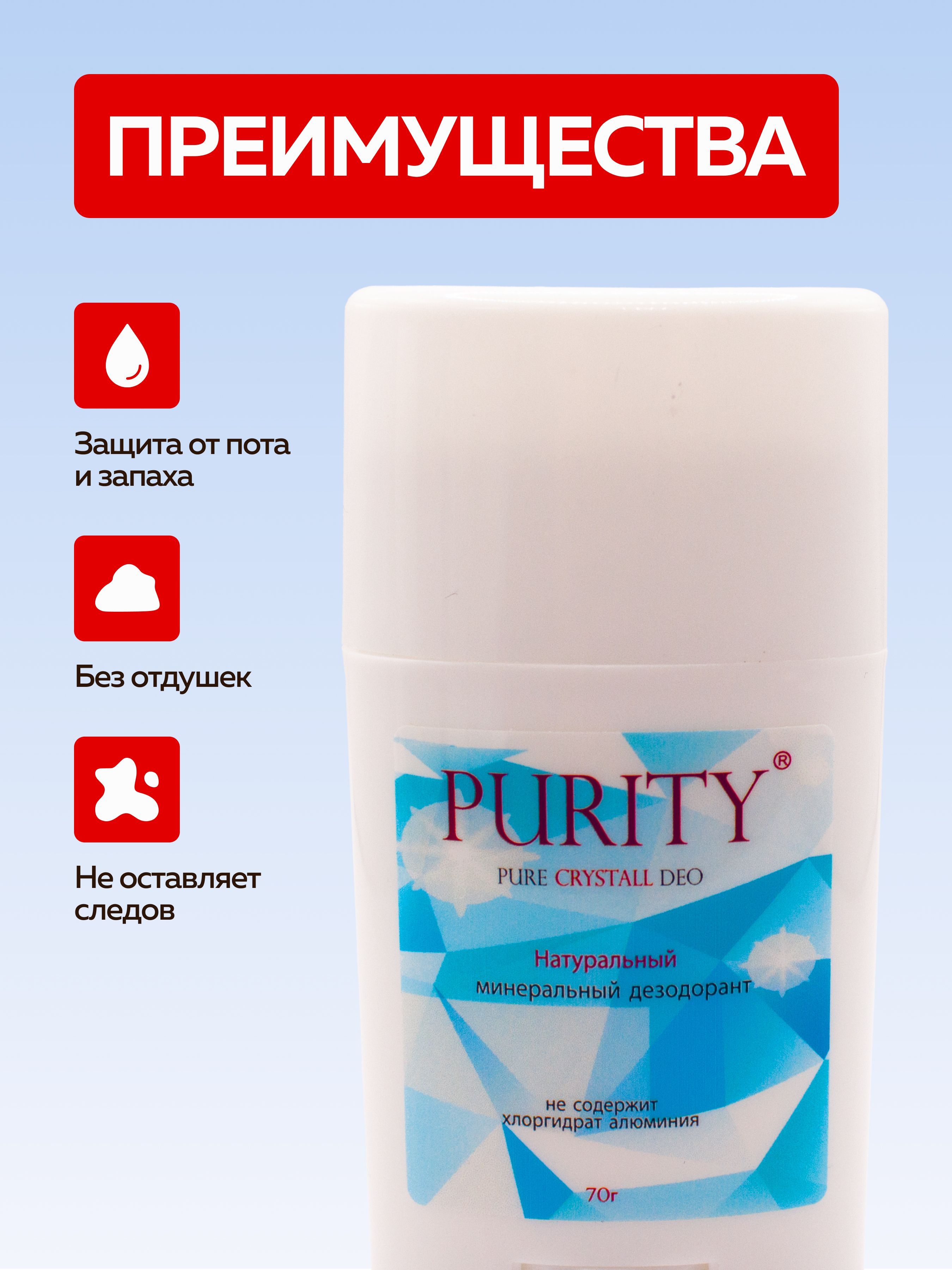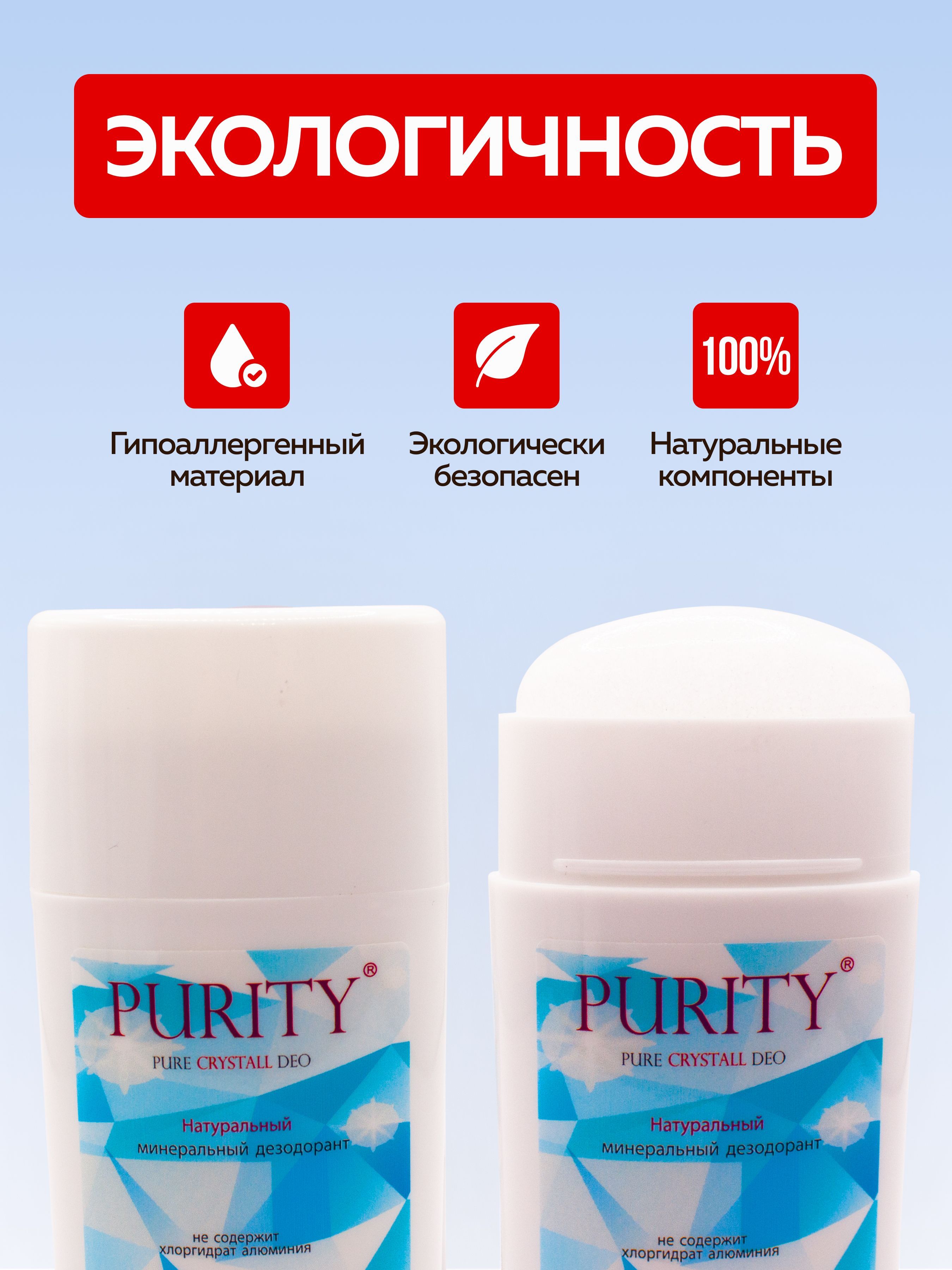 PURITY / Кристалл - 100 % натуральный минеральный дезодорант, вывинчивающийся стик без добавок, 70 г