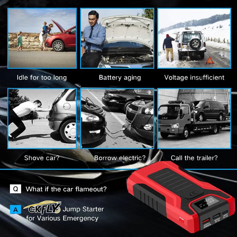 Пусковое устройство GKFLY для автомобиля, портативное пусковое устройство для бензинового и дизельного двигателя, внешний аккумулятор для автомобильного аккумулятора 1200 а, пусковое устройство для зарядки аккумулятора