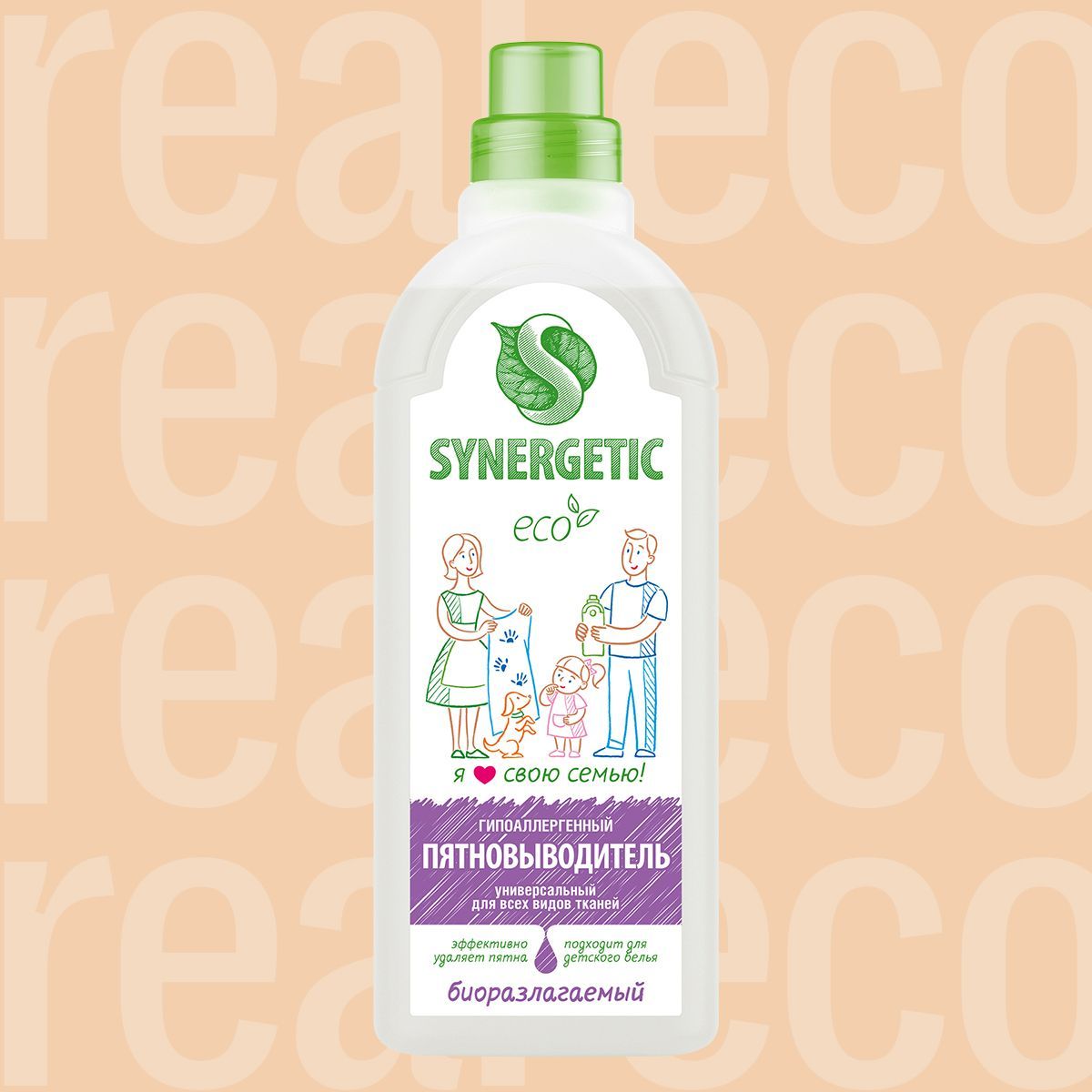 Пятновыводитель SYNERGETIC 1 литр универсальный, жидкий, для цветного, белого, детского 0+ белья, стирки тканей, ковров, от жира, крови, краски, чернил, ягод, травы, вина, пота, дезодоранта, деликатных, мембранных тканей, шерсти, шелка.