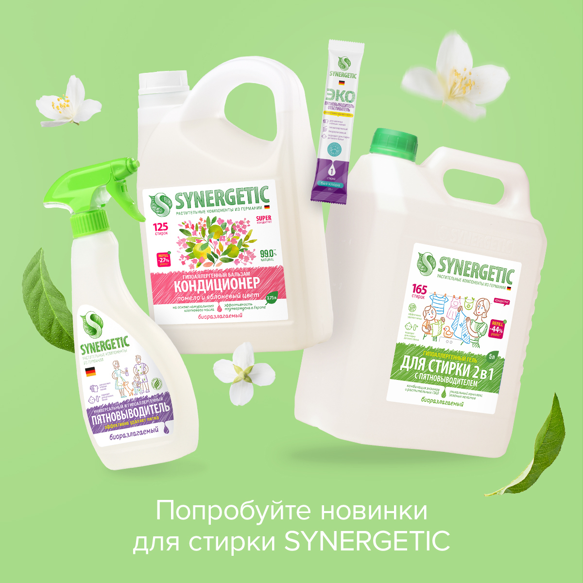 Пятновыводитель для белья SYNERGETIC 1л гипоаллергенный, эко, универсальный, для цветного, белого белья, детский, без запаха